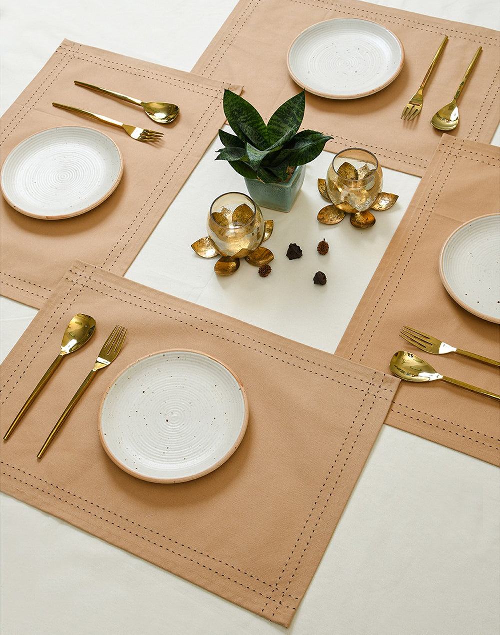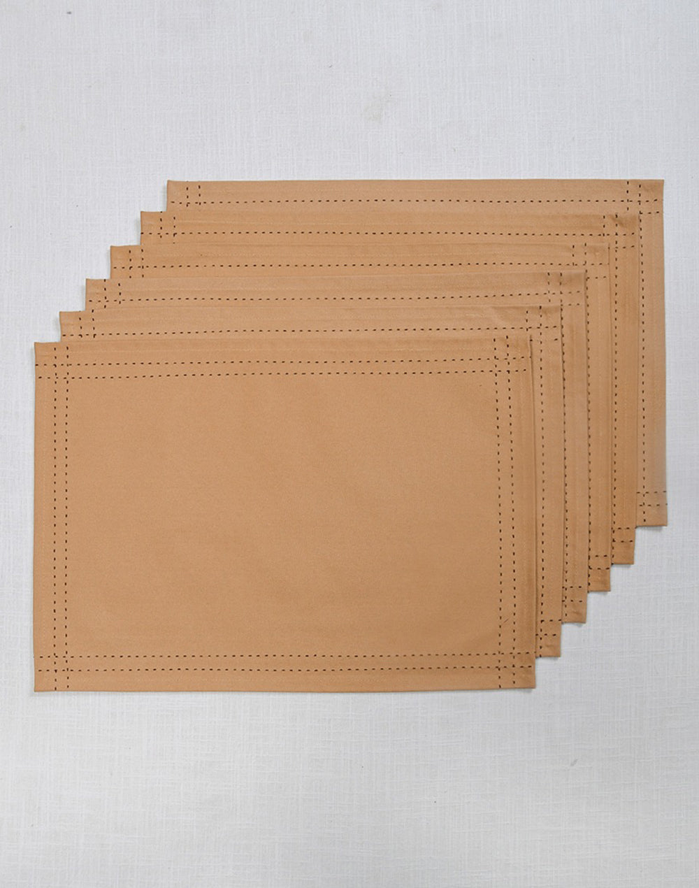 Beige Cotton Solid Plain 13x19 Inch Placemat Set Of 6