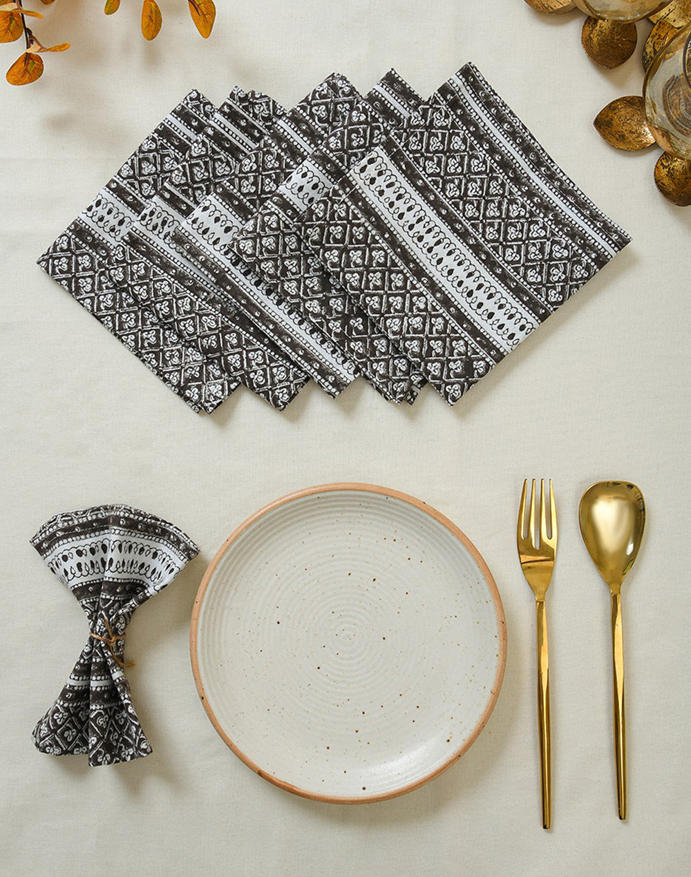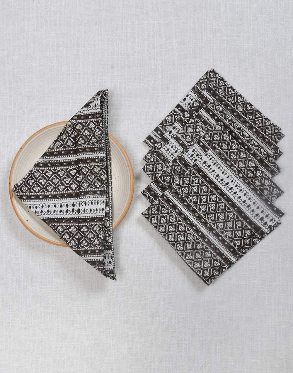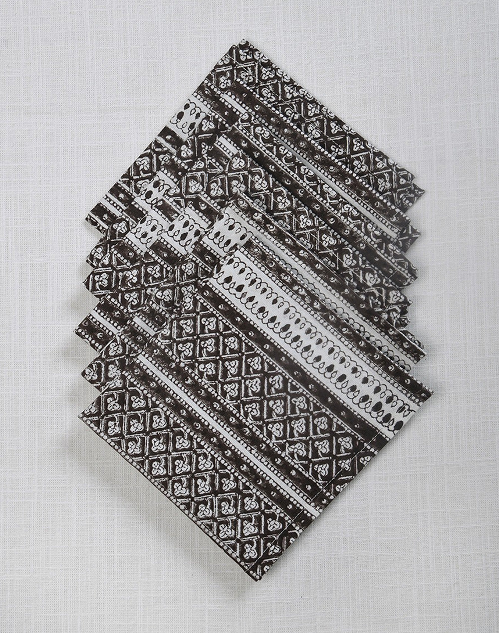 Brown Cotton Stripe Printed 12x12 Inch Napkin Set of 6
