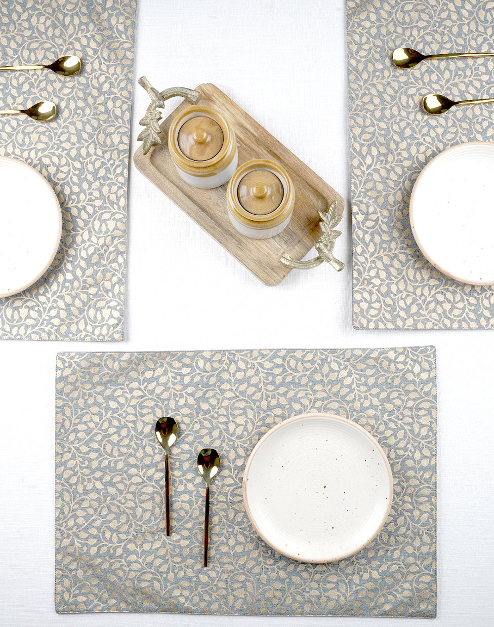 Grey Cotton Gold Leaf Printed 13x19 Inch Placemat Set Of 6