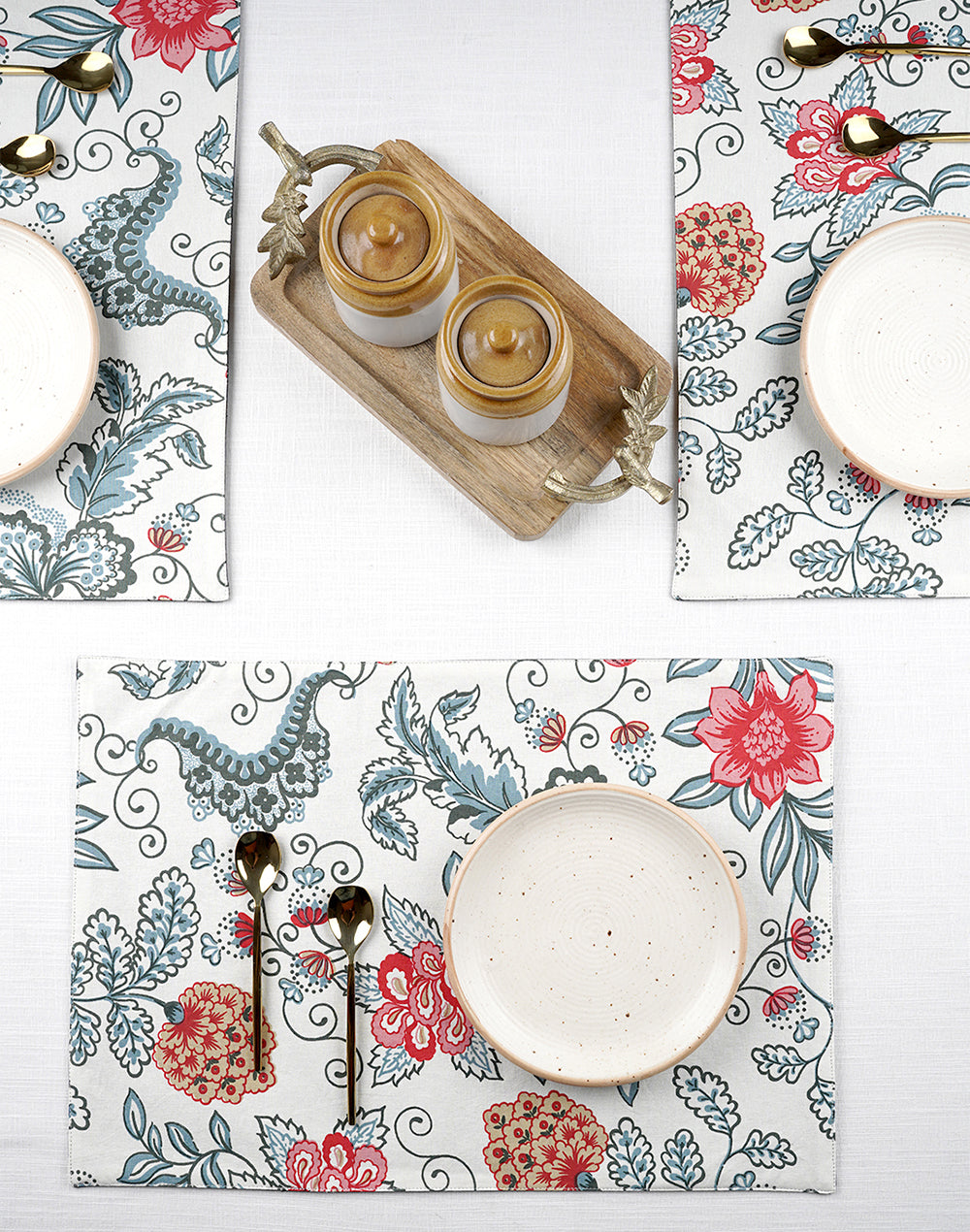 Off White Cotton Jaal Printed 13x19 Inch Placemat Set Of 4