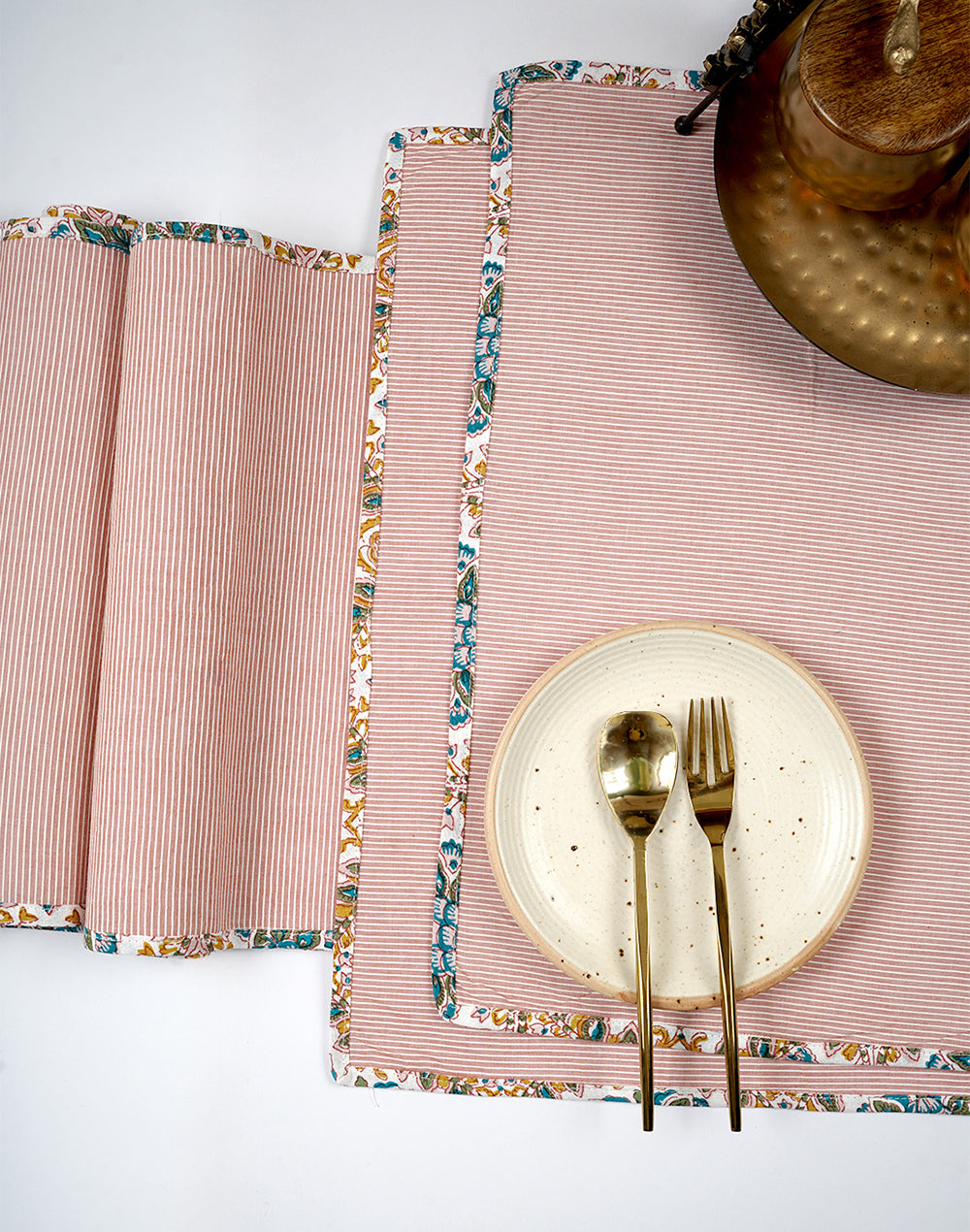 Pink Cotton Stripe Pattern 13x19 Inch Placemat Set Of 6
