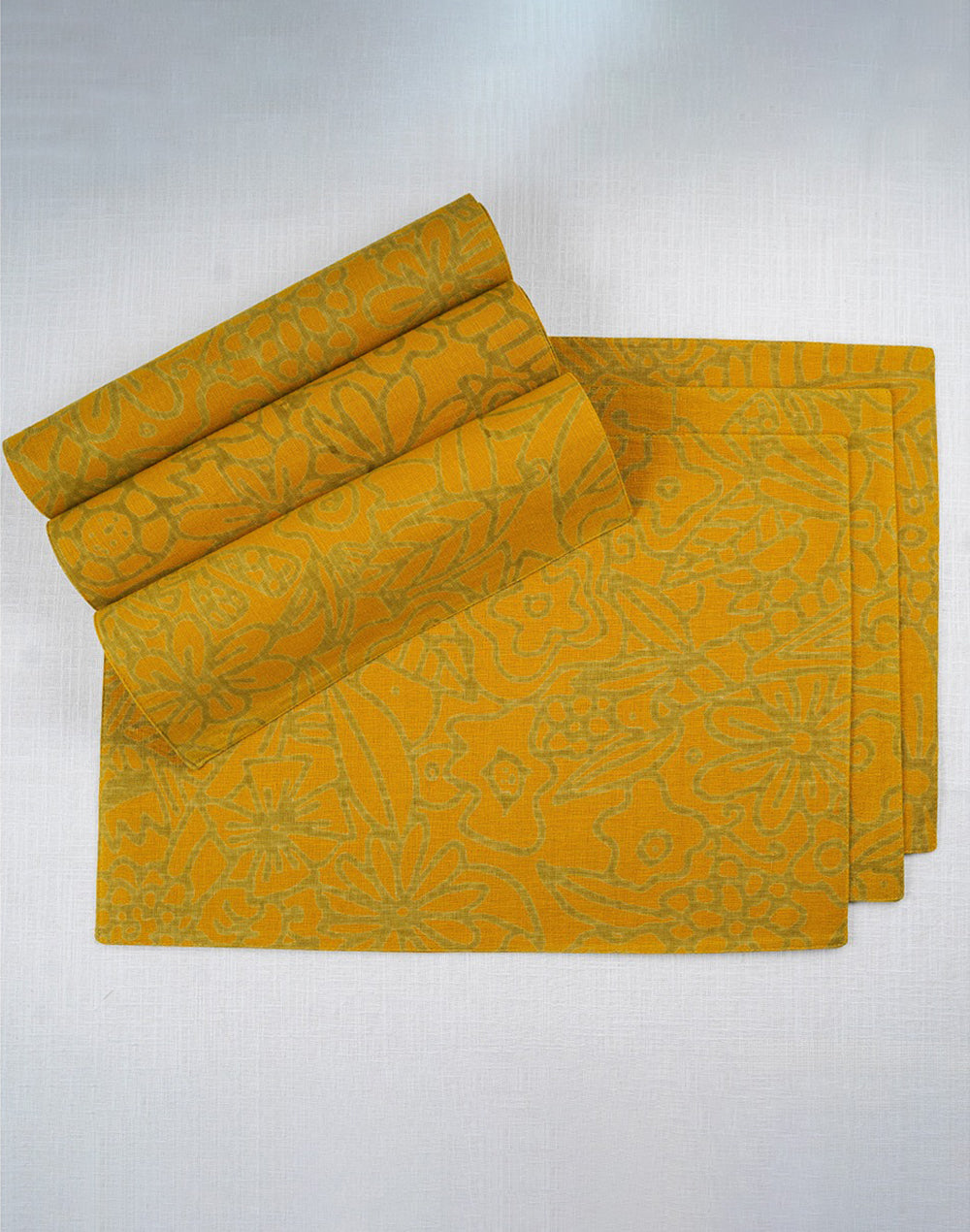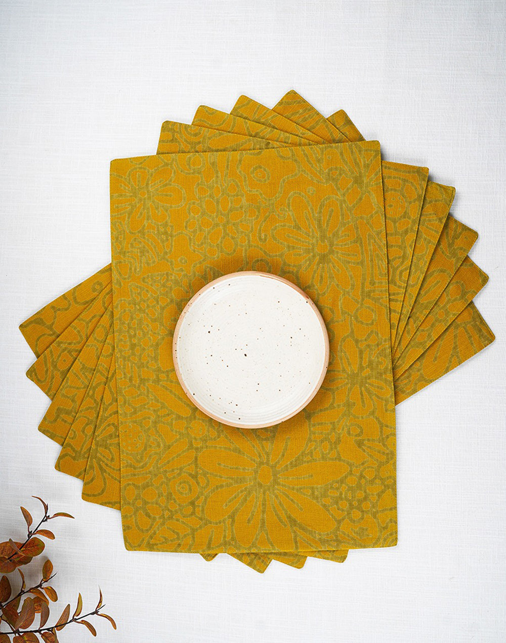 Yellow Cotton Floral Printed 13x19 Inch Placemat Set Of 6