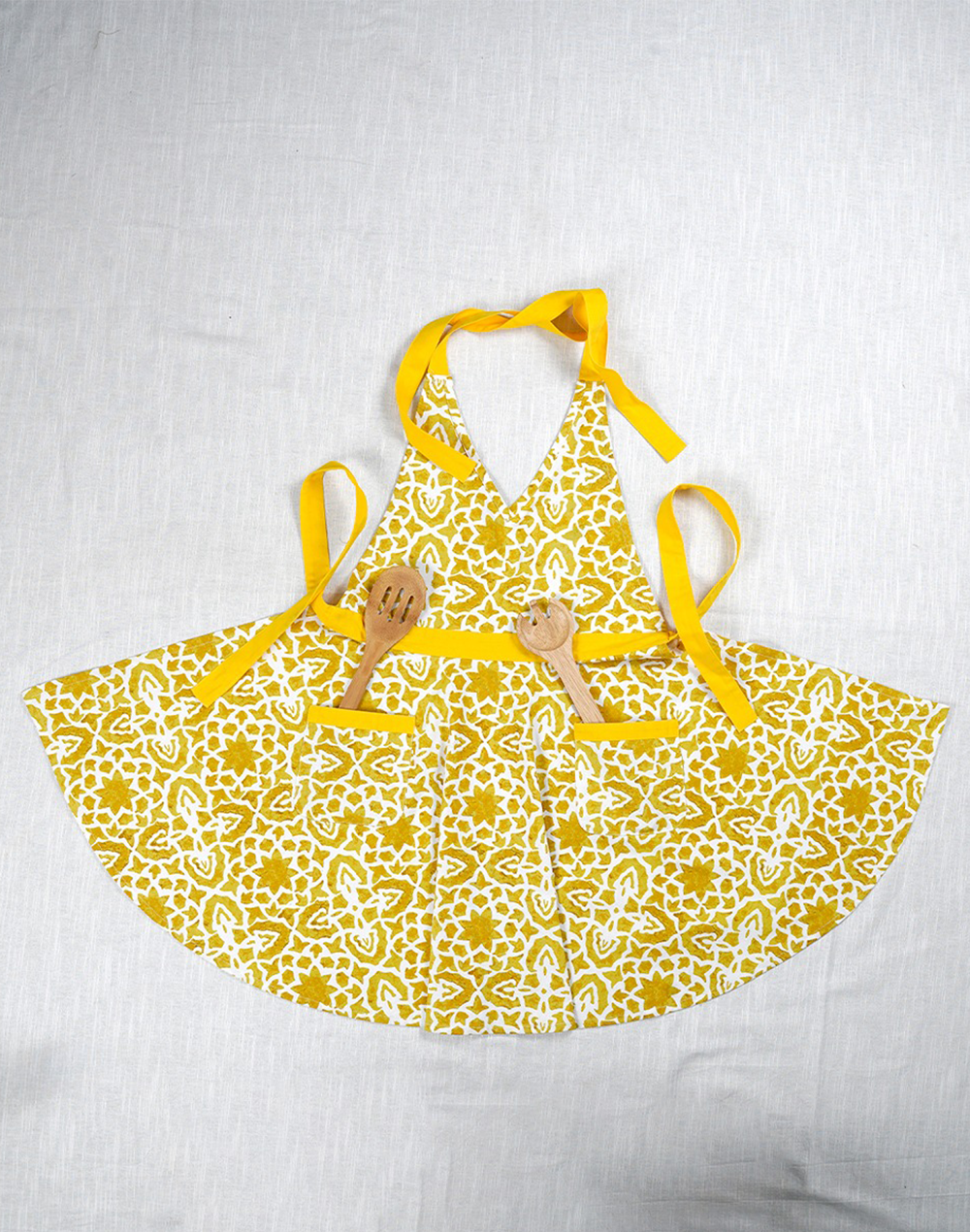 Yellow Floral Cotton Kitchen Apron