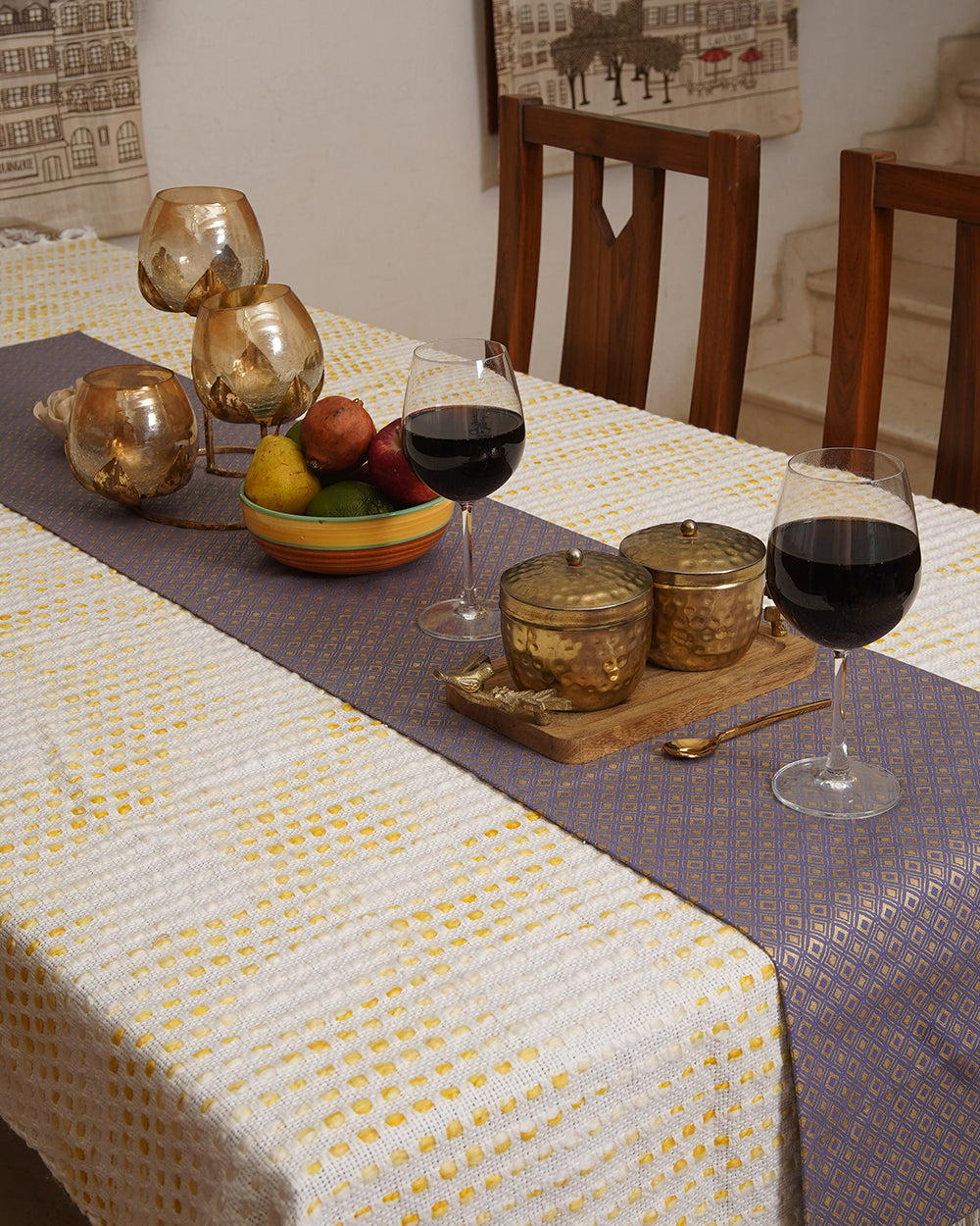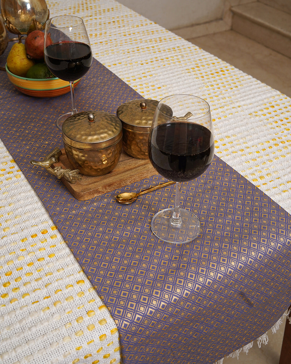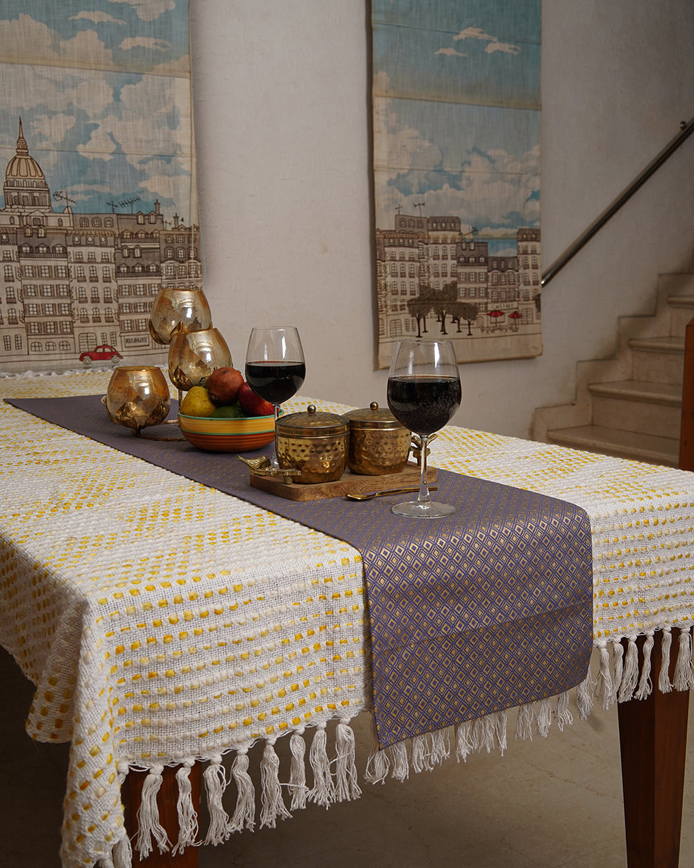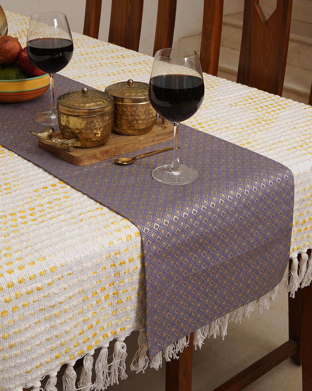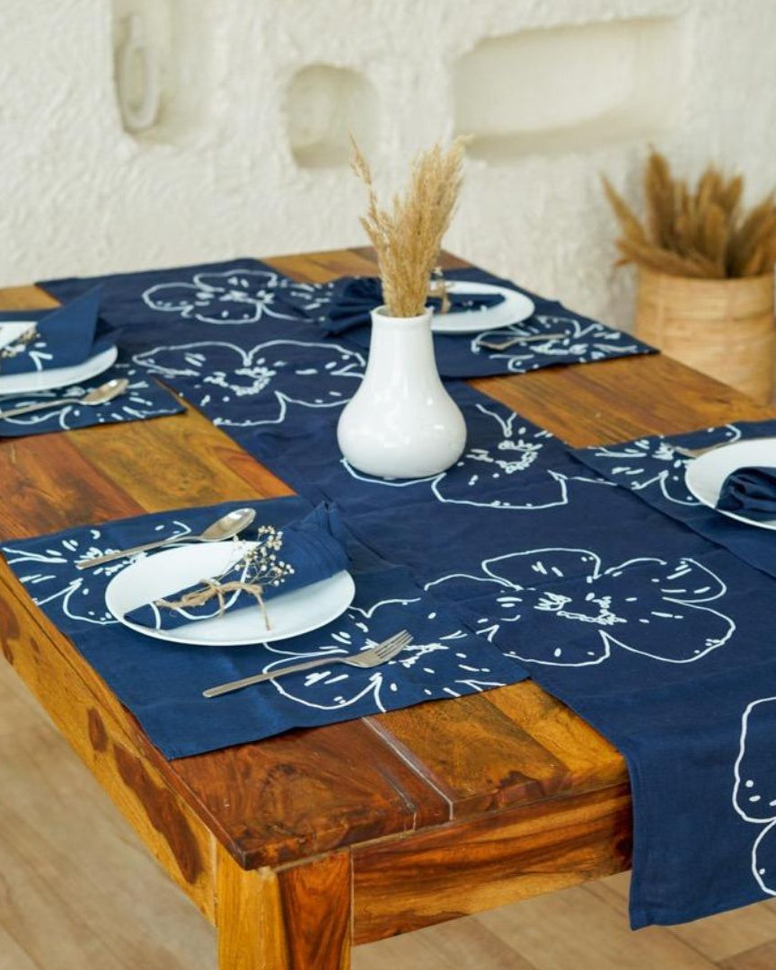 Ans: Our collection includes dining table runners, bamboo table runners, quilted runners, modern table runners, and handwoven designs.