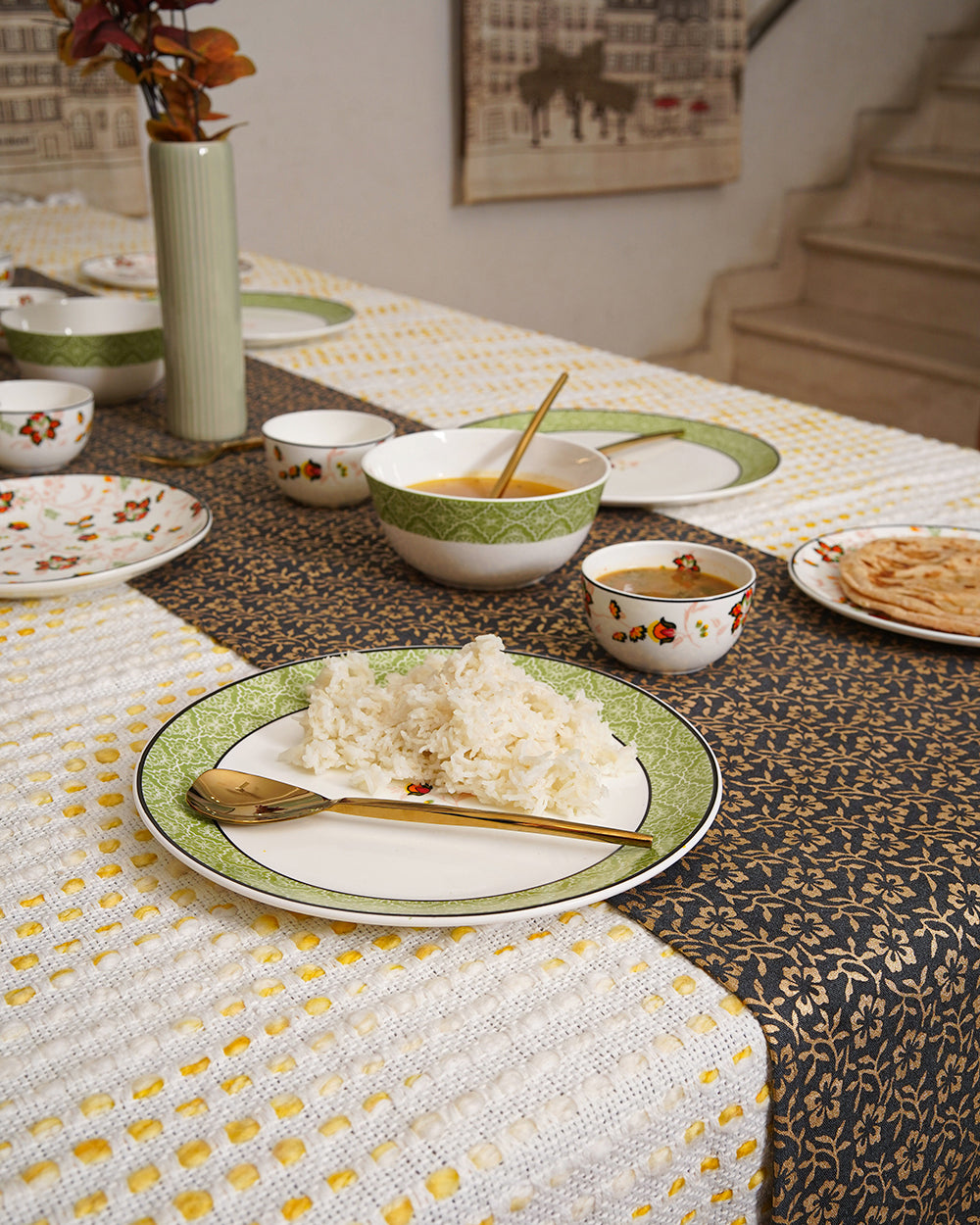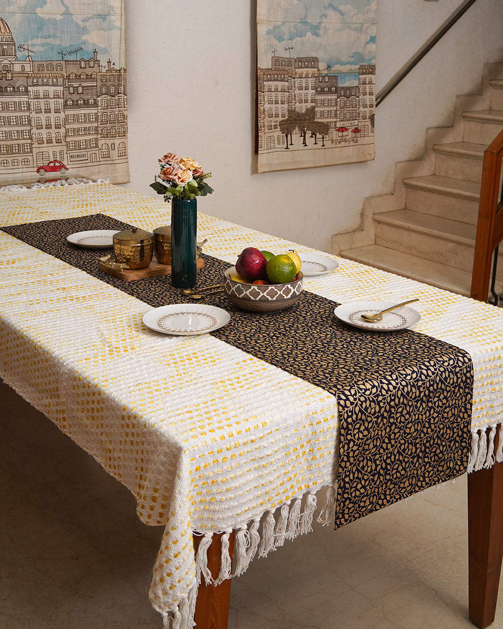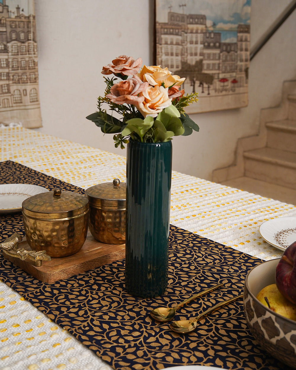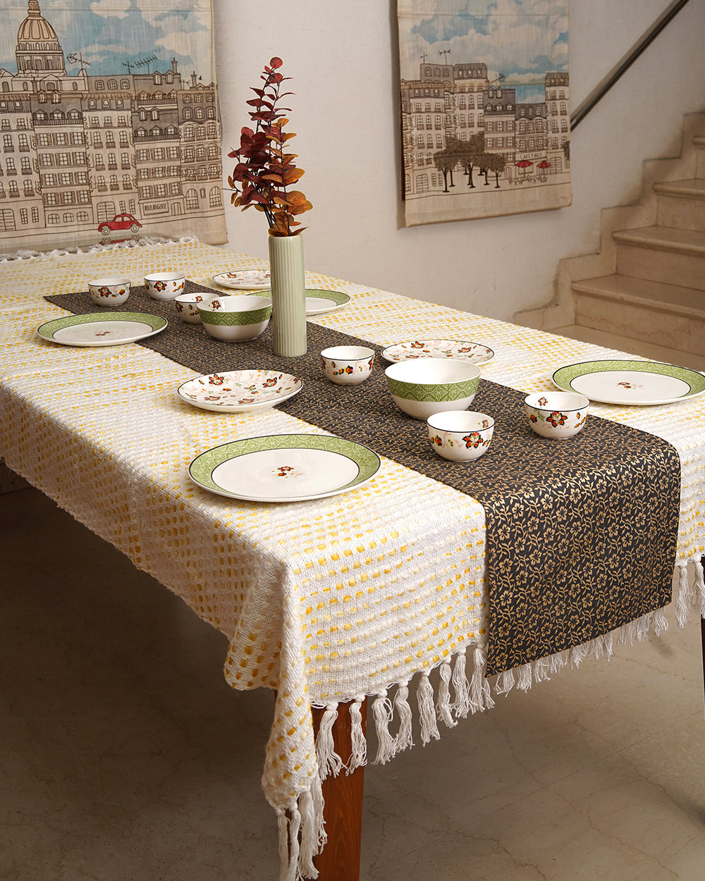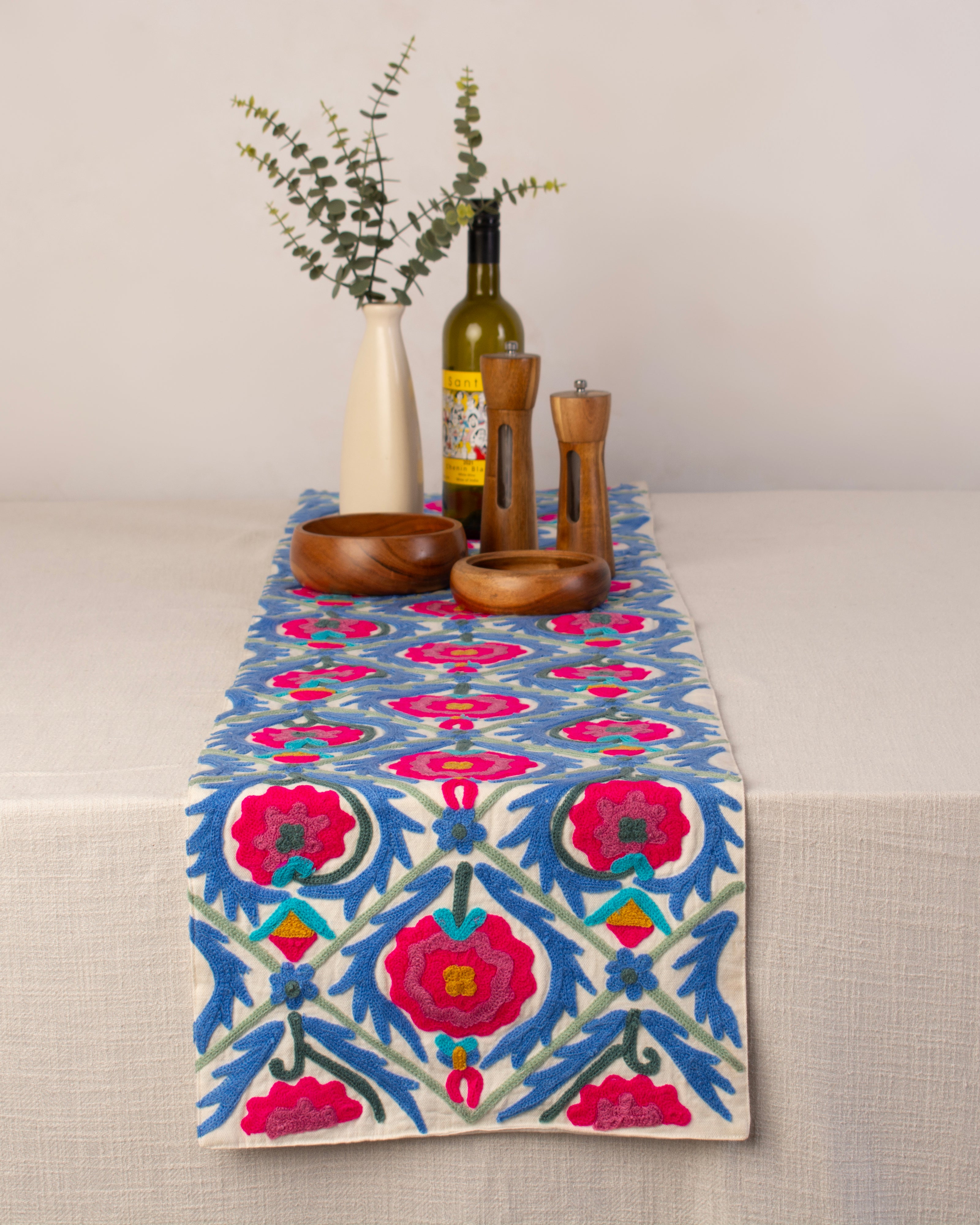 Ans: Our collection includes dining table runners, bamboo table runners, quilted runners, modern table runners, and handwoven designs.