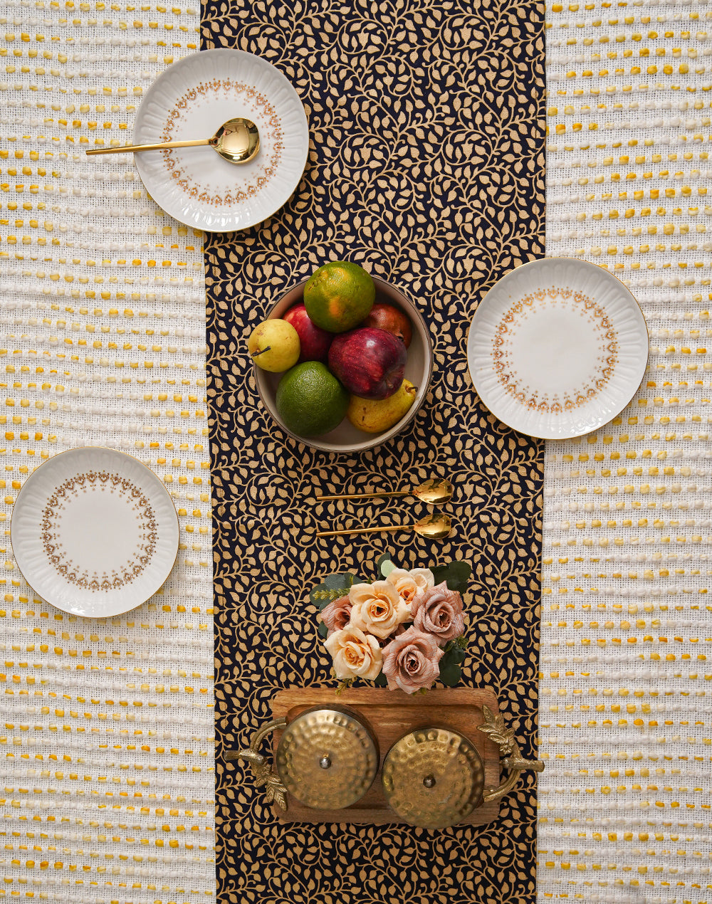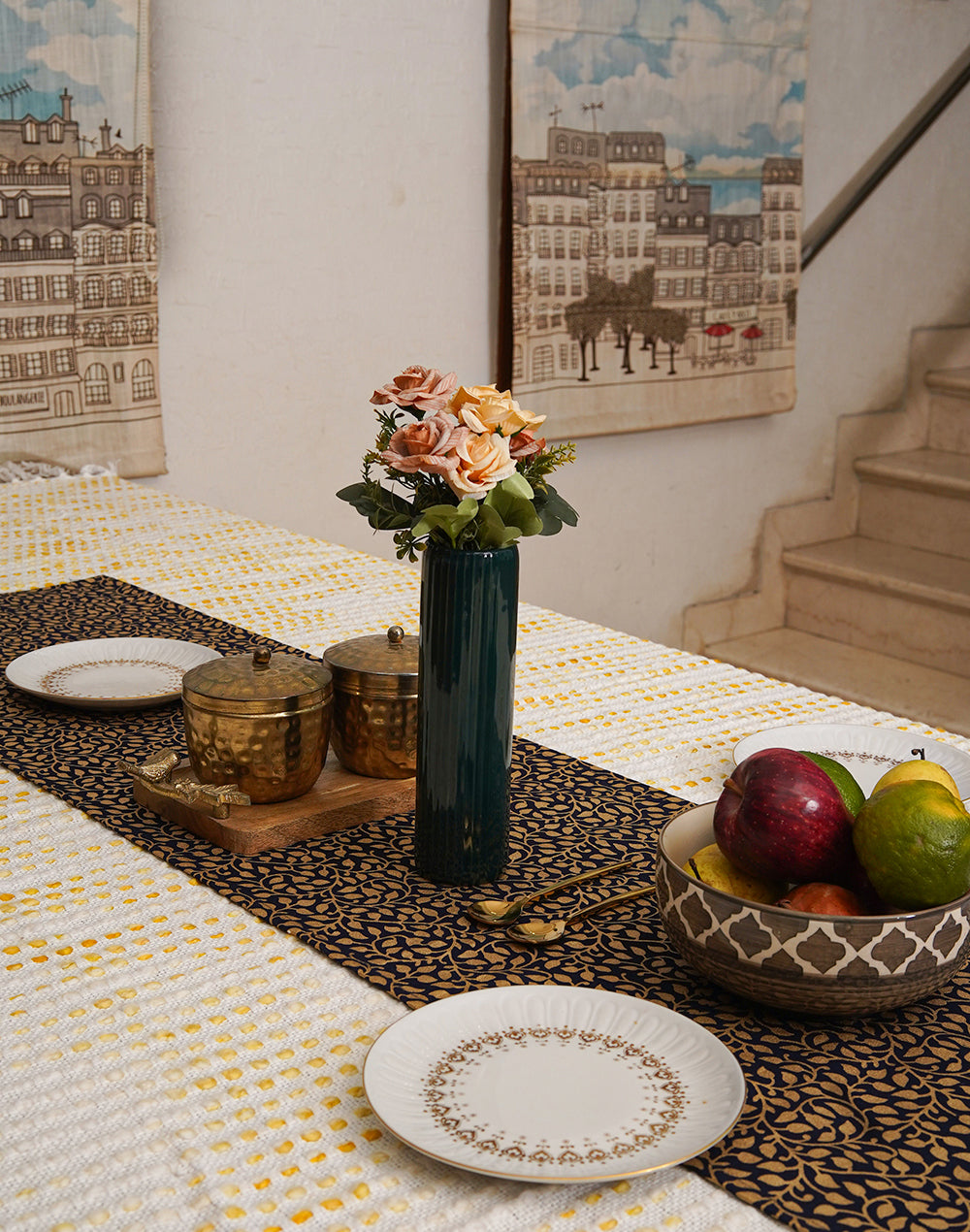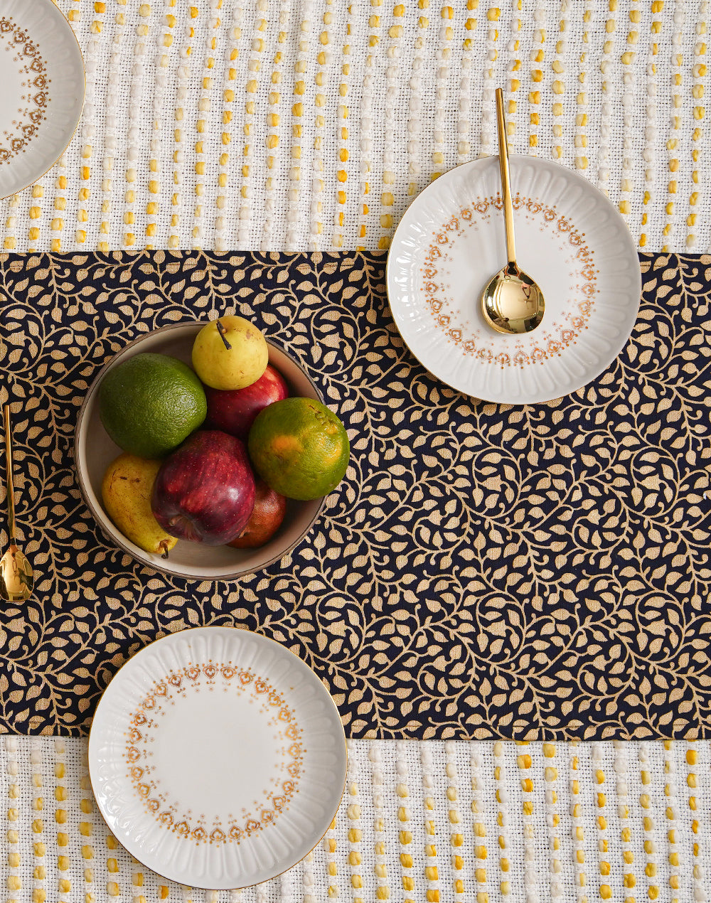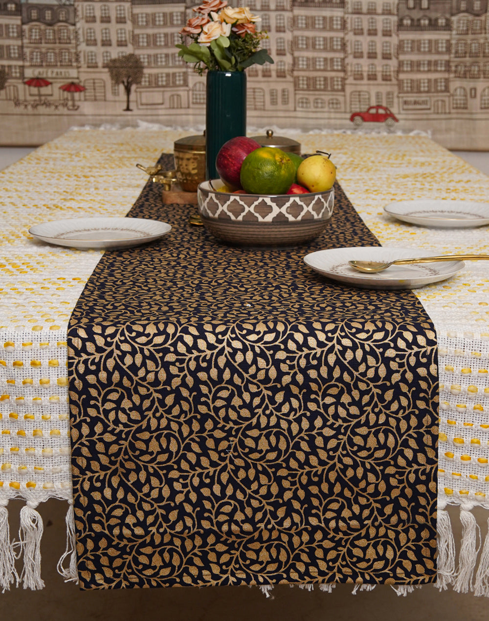 Dark Blue Leaf Jaal Canvas 14x72 Inch Runner