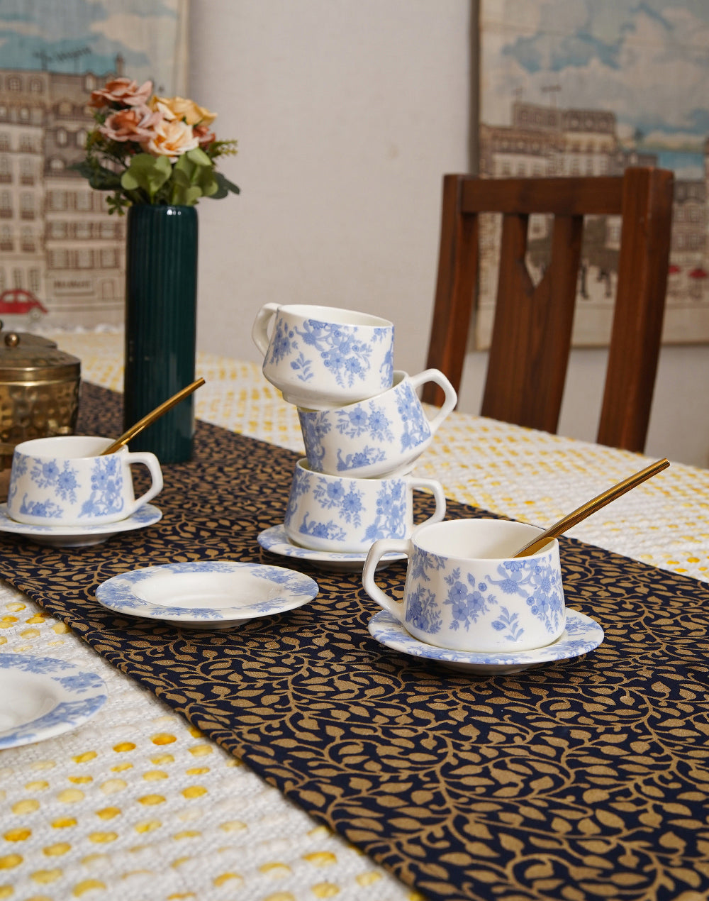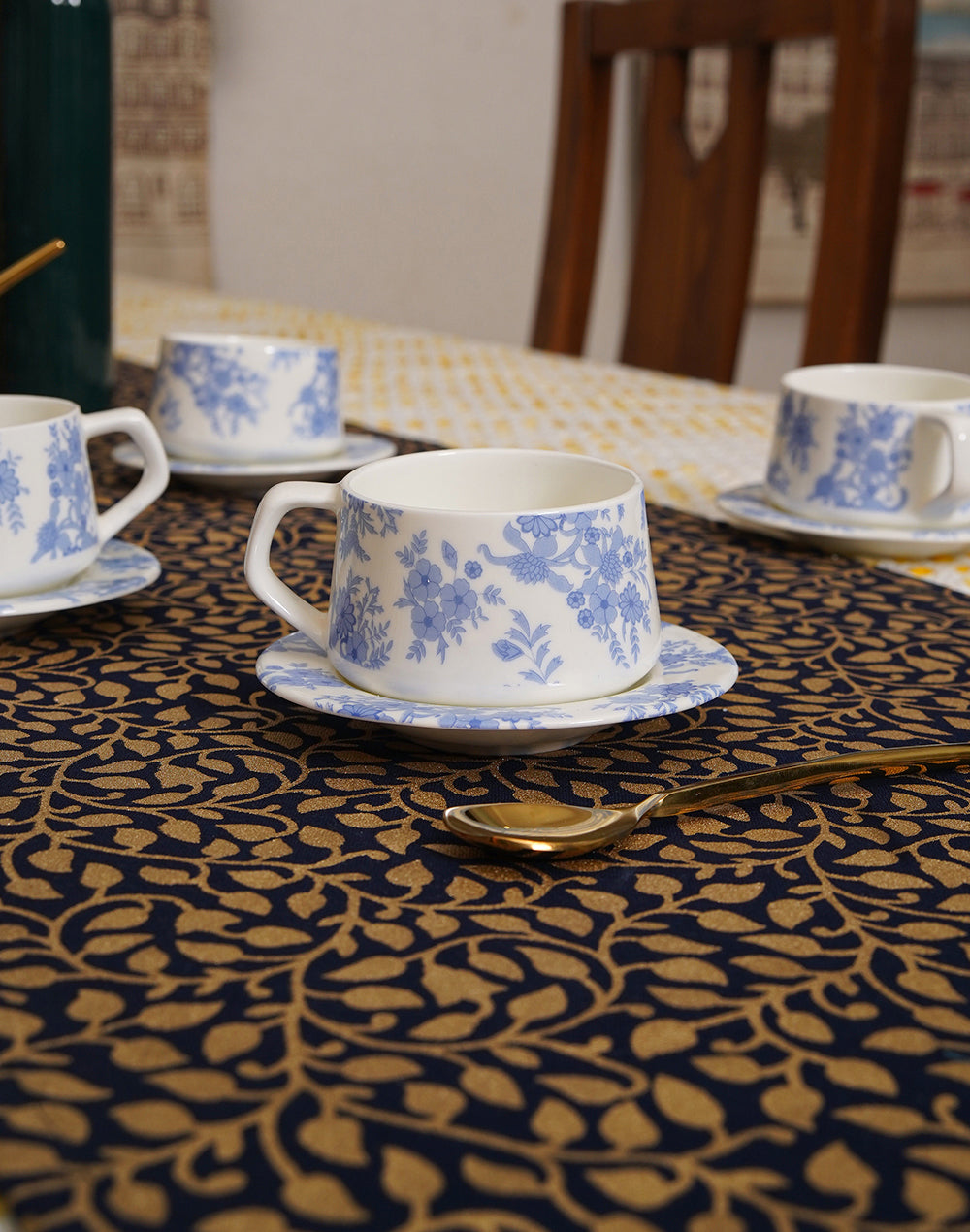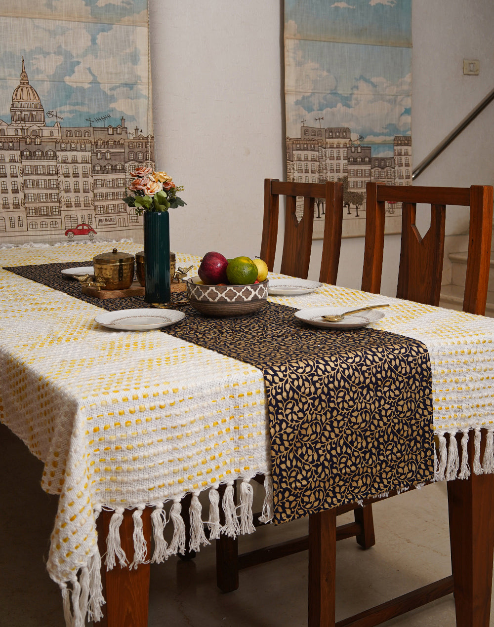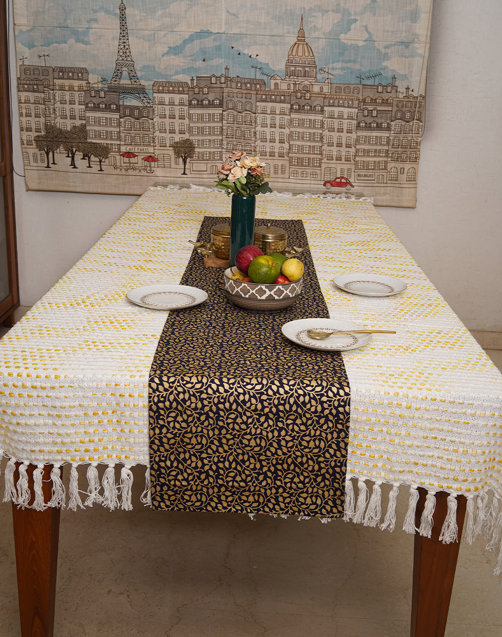 Dark Blue Leaf Jaal Canvas 14x72 Inch Runner