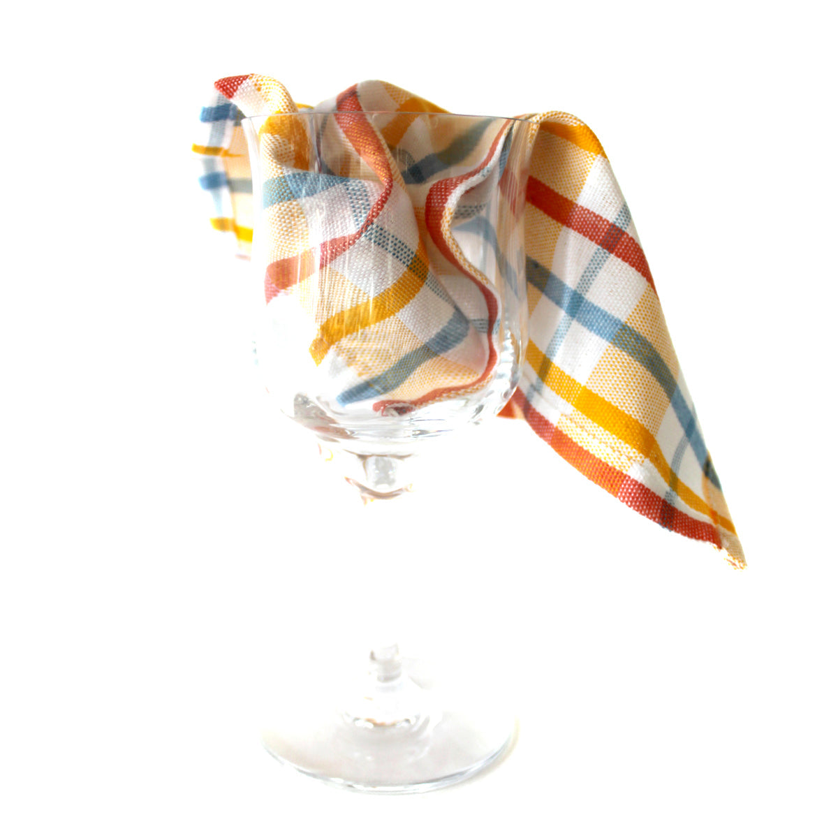 This set contains 12 cocktail napkins in 2 check patterns ( 6 pcs each) packed in a bright drawstring pouch.