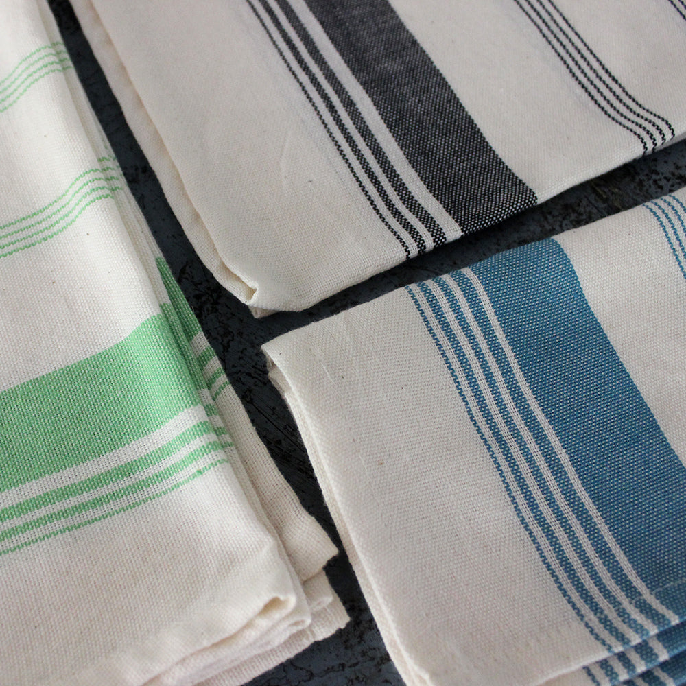Our ever popular Candy Stripe pattern on this natural unbleached base fabric creates the same graphic pattern but with a more earthy appeal.