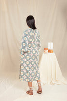 It is a resort party with this airy tile print tunic. It features blouson sleeves with contrasting exaggerated cuffs. In-seam pockets. With gathers at the back and side slits, this tunic is a holiday must-have. Try pairing this stunning piece with the Wide-legged pants.