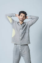 Description: Cut in luxurious handwoven jute cotton this shirt has a special "2 in 1" effect given its bomber nature that allows for multiple styling opportunities.