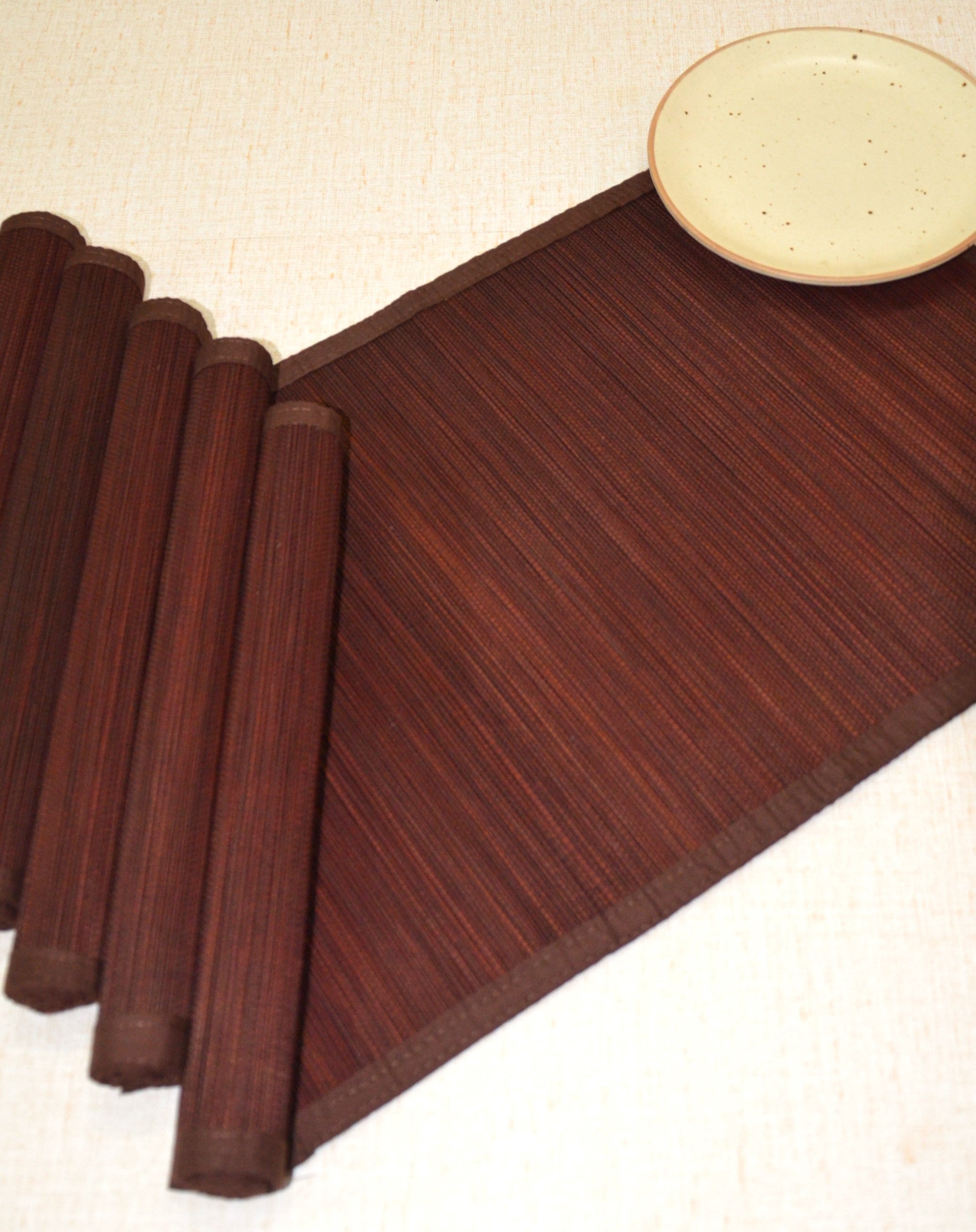 Dharini Bamboo Placemats Plain Brown (Set of 6)
