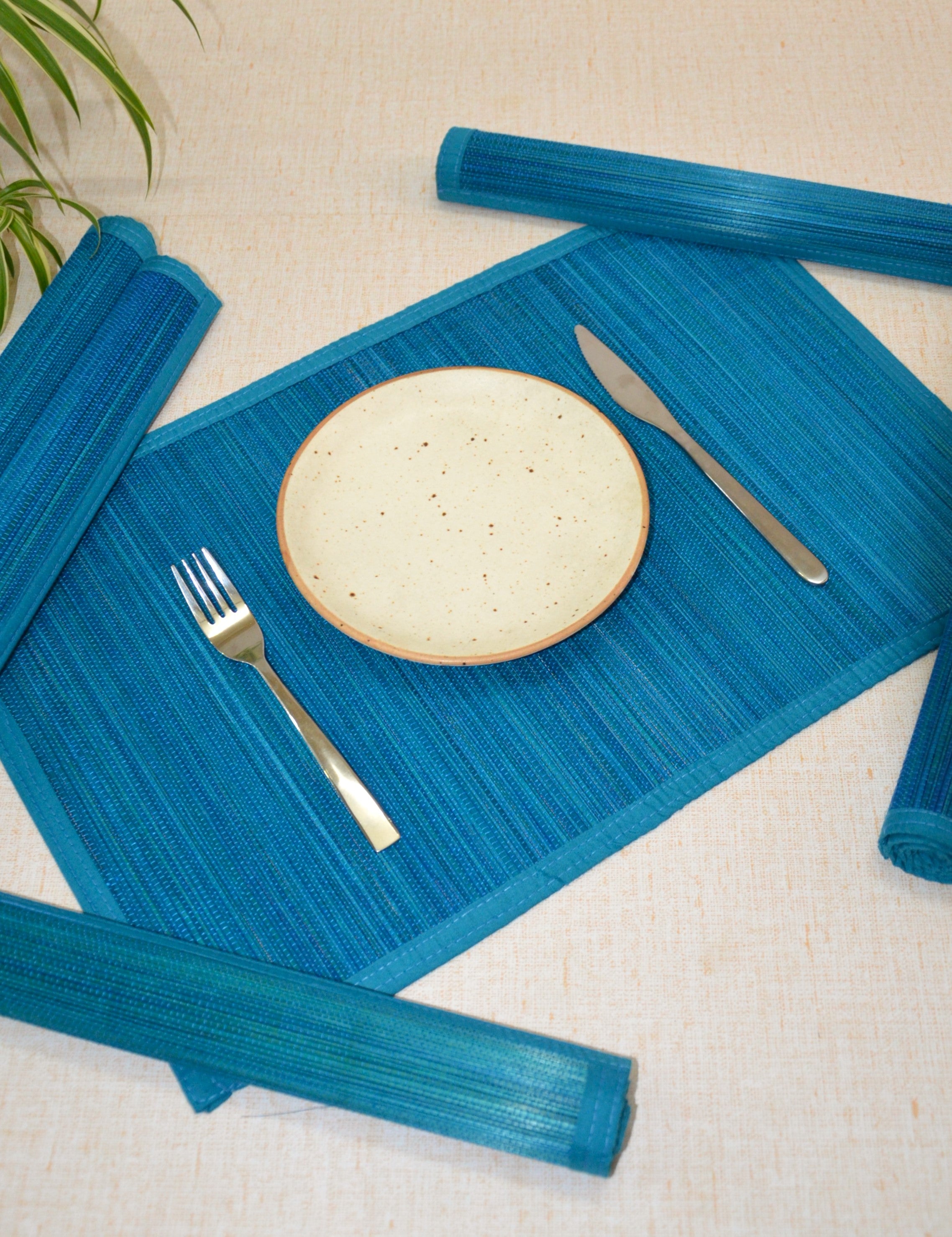 Dharini Bamboo Placemats Plain Blue (Set of 6)