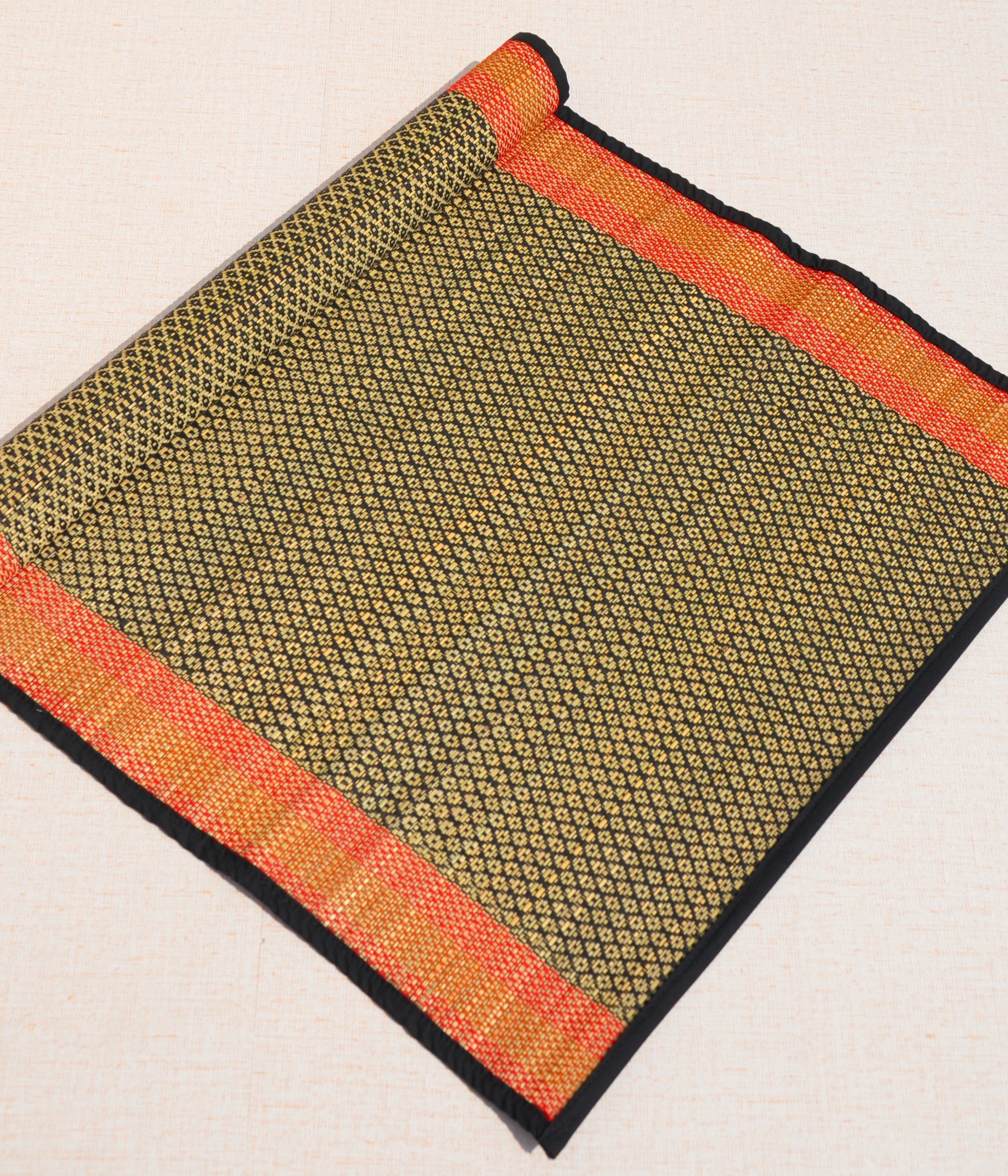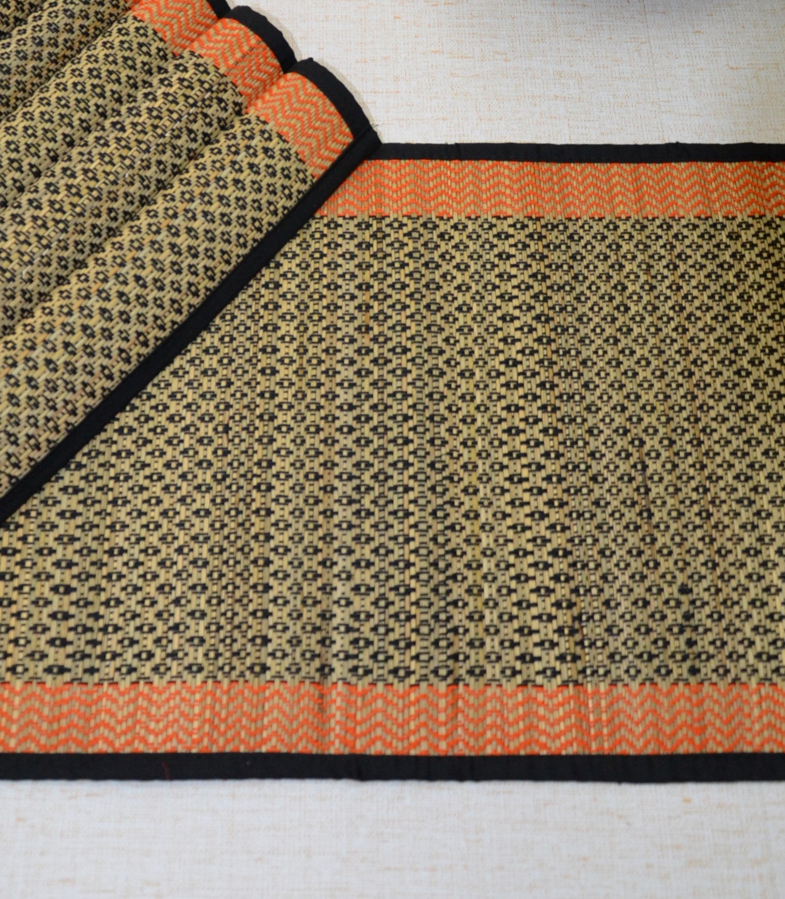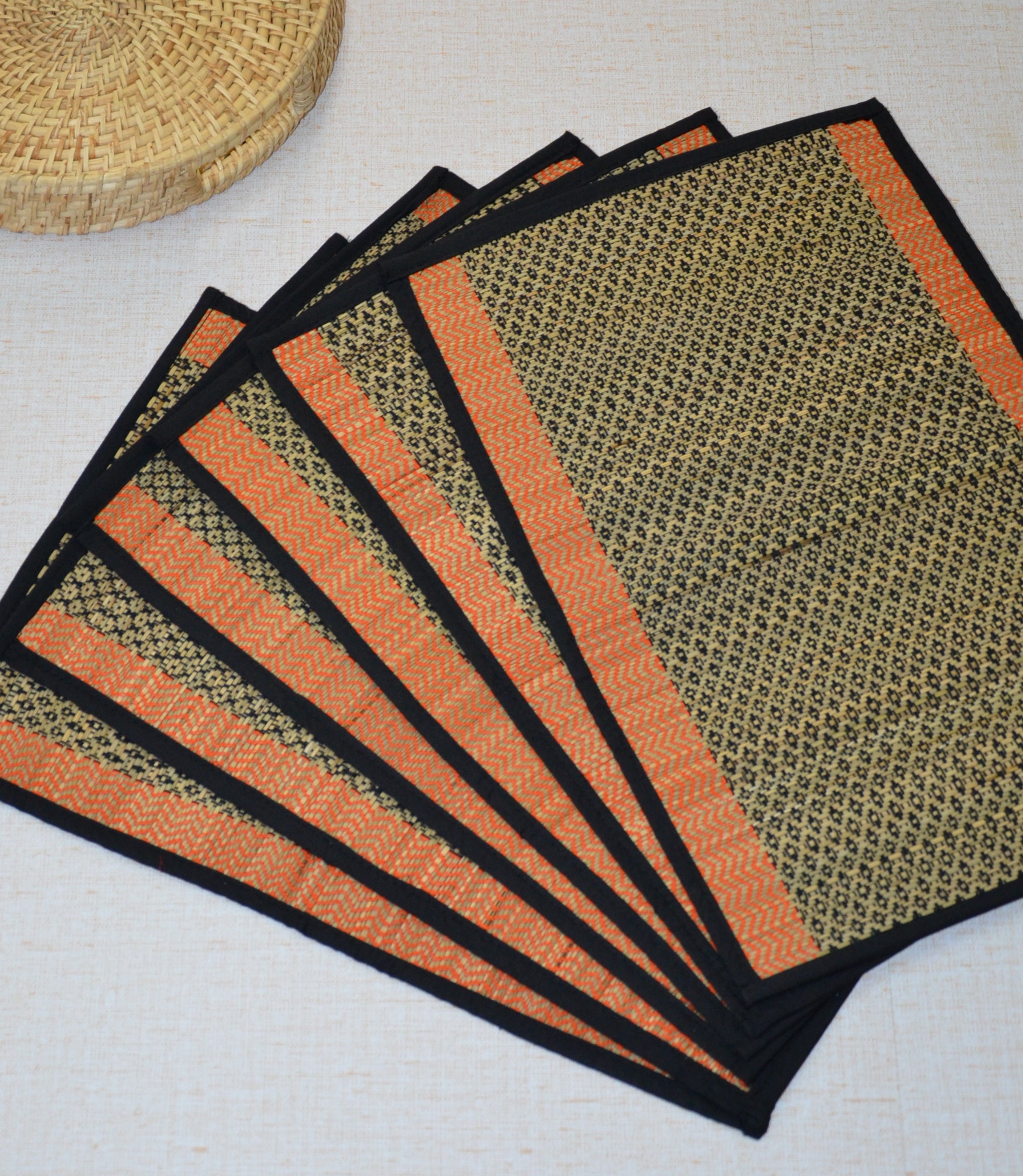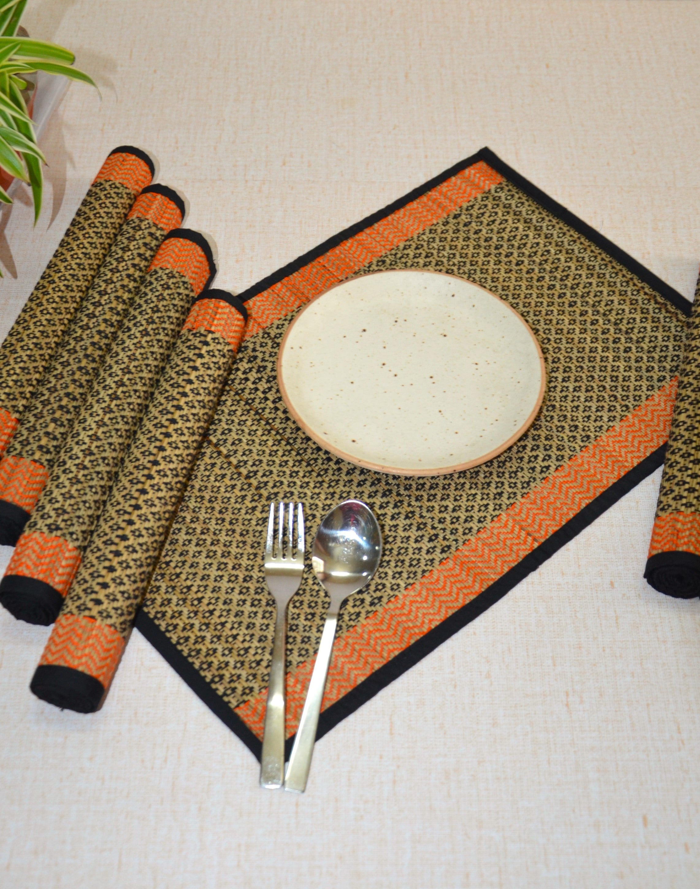 Dharini Madurkathi Diamond Placemats Black Orange (Set of 6)