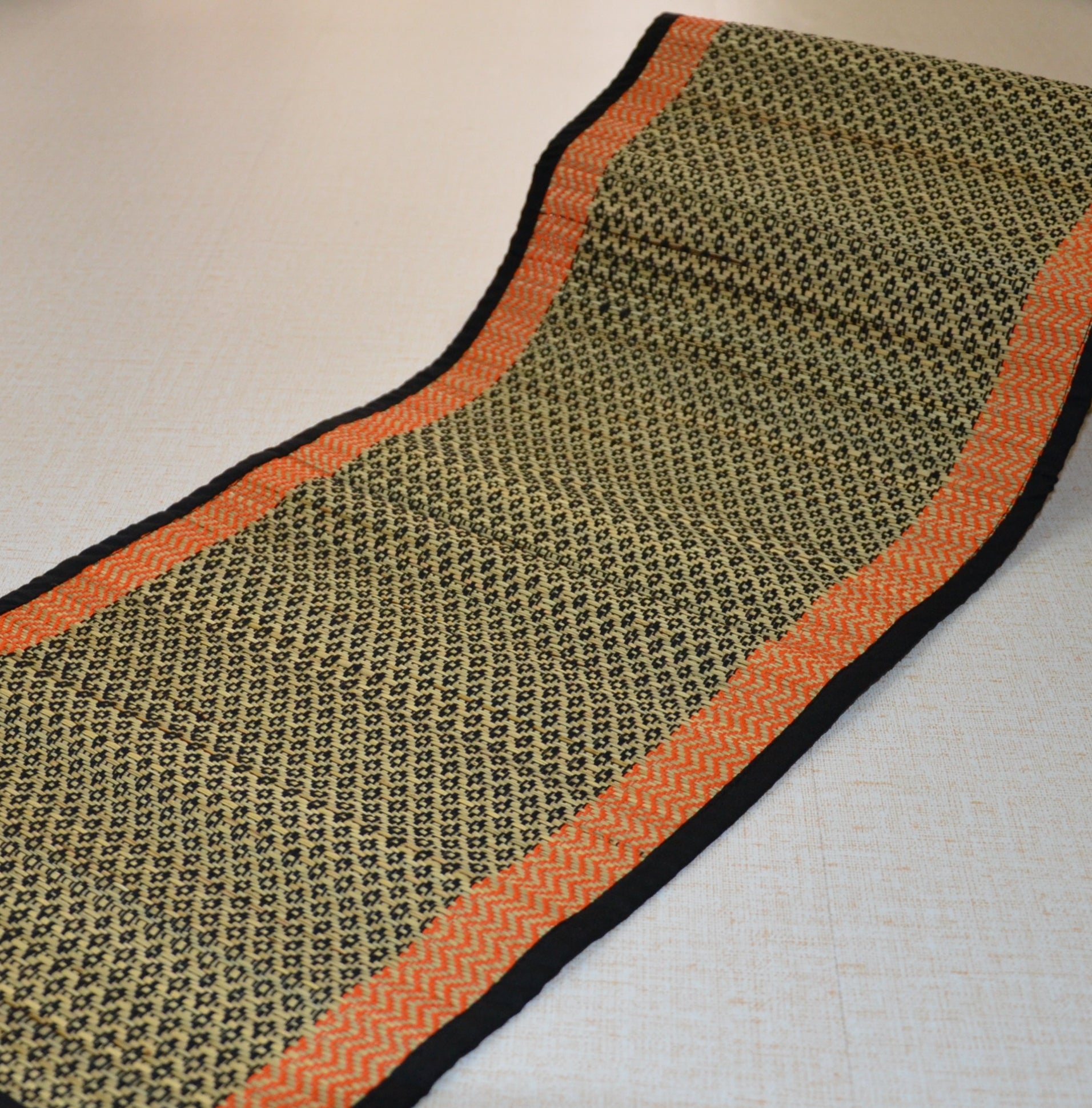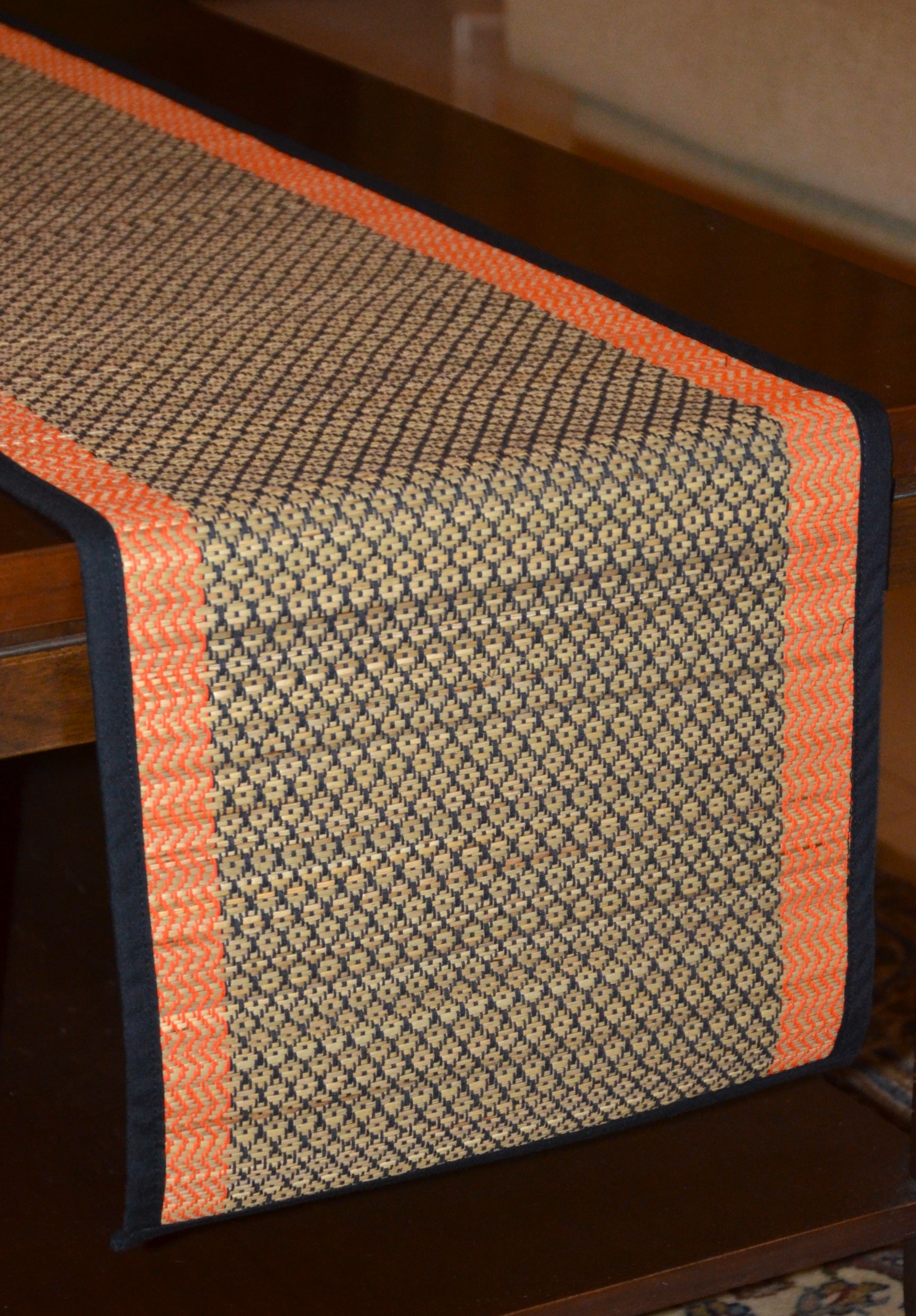 Dharini Madurkathi Diamond Table Runner Black Orange