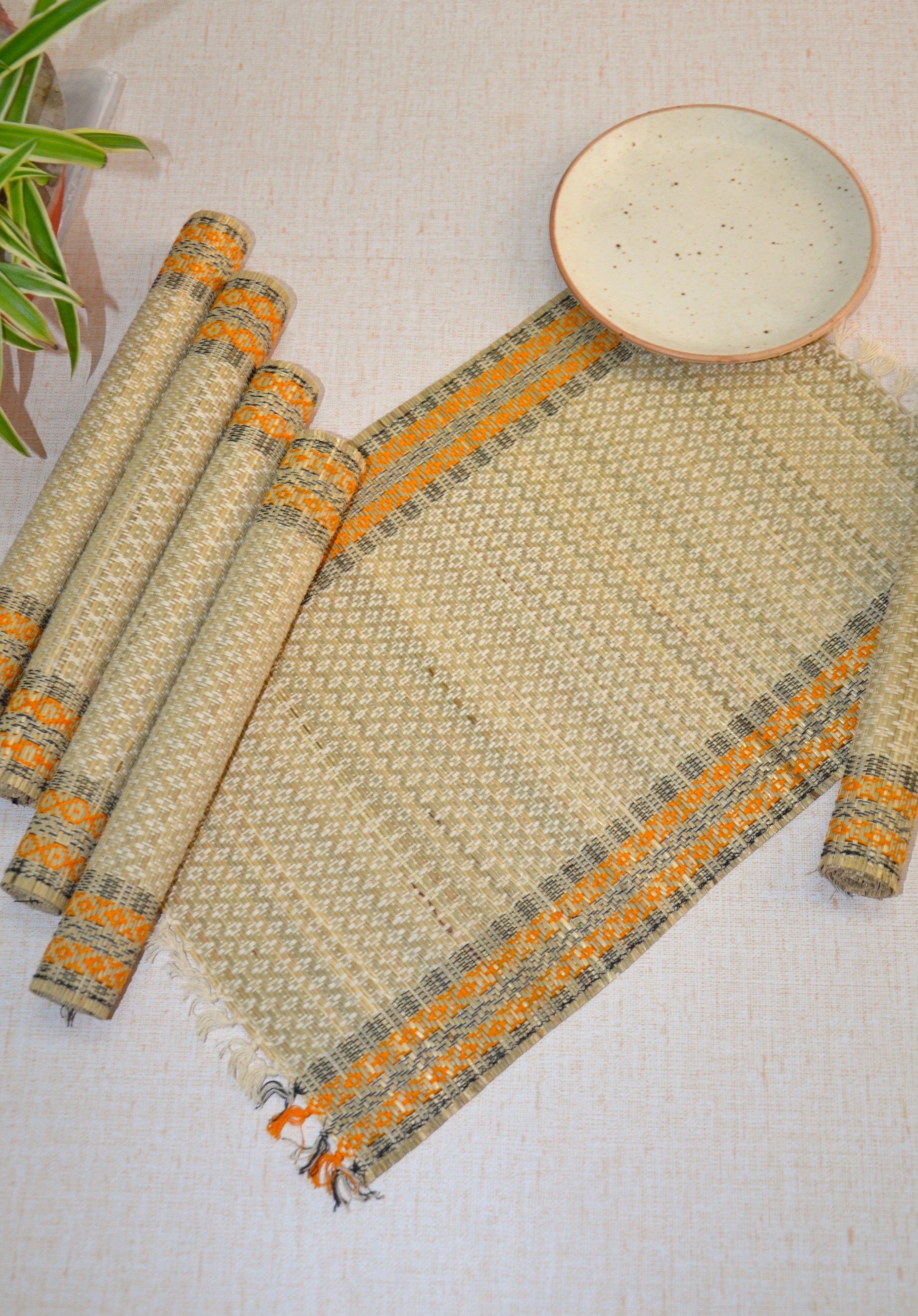 Dharini Madurkathi Diamond Placemats Orange (Set of 6)