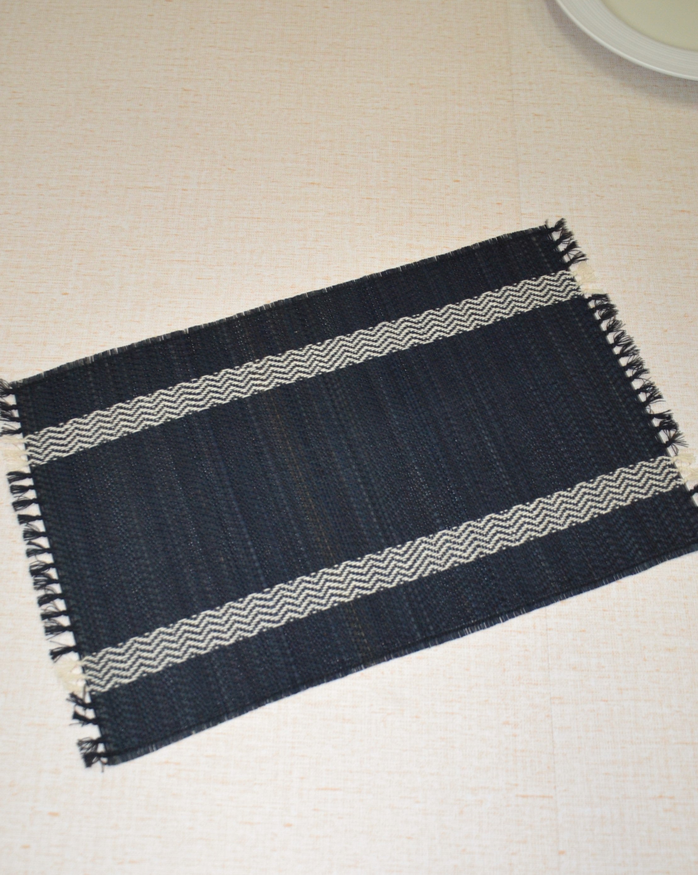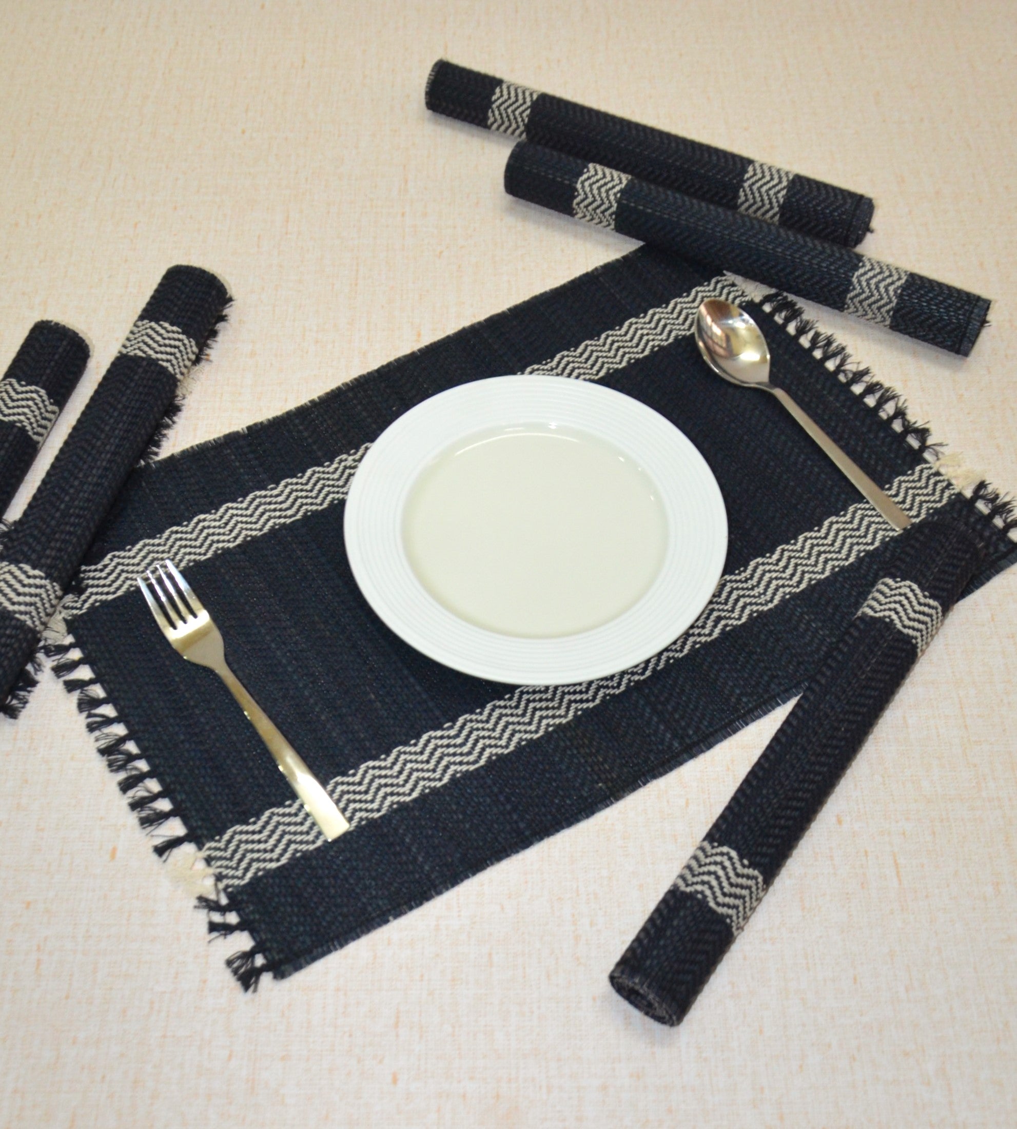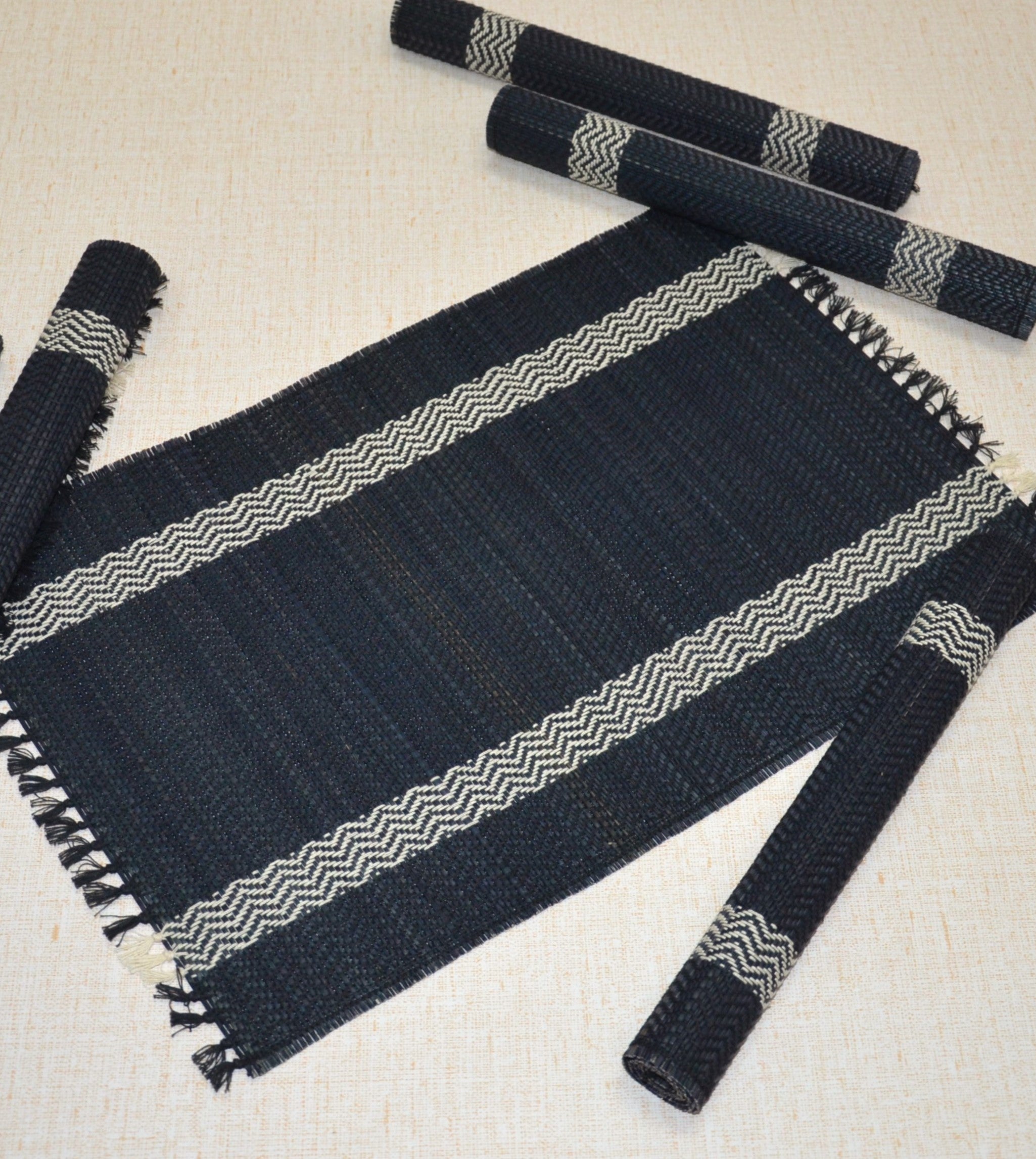 Dharini Madurkathi Tassels Placemats Charcoal (Set of 6)