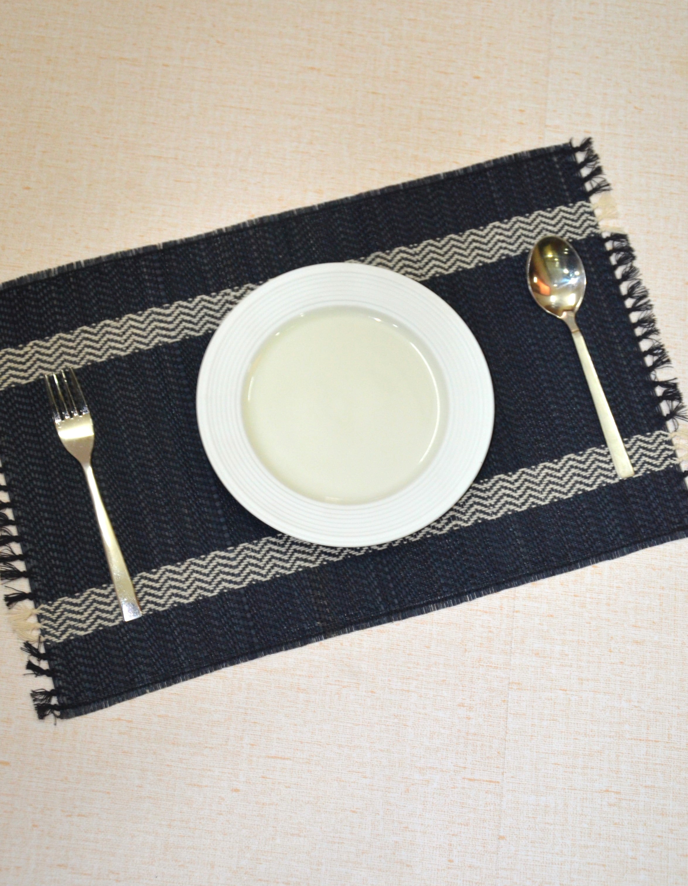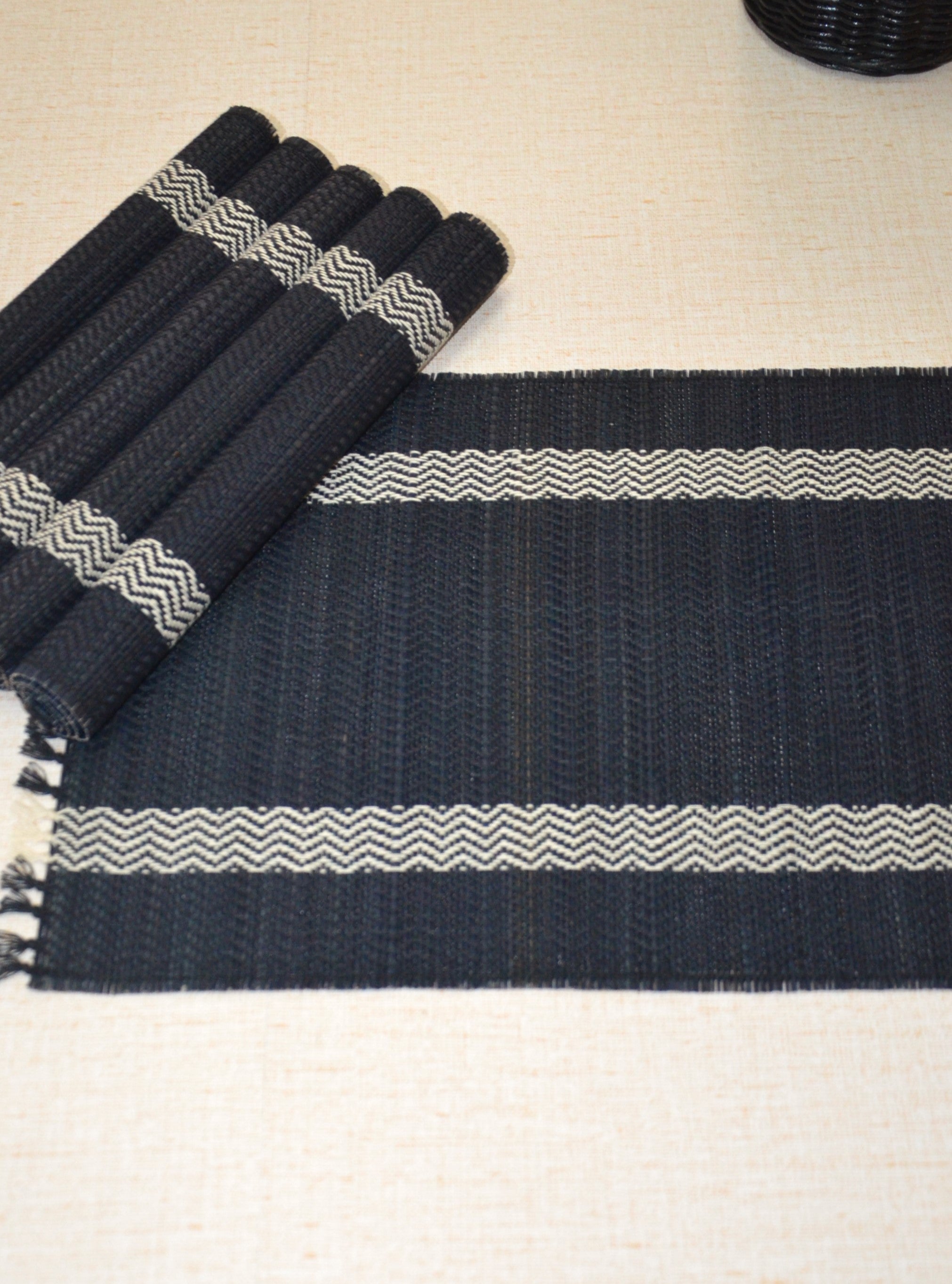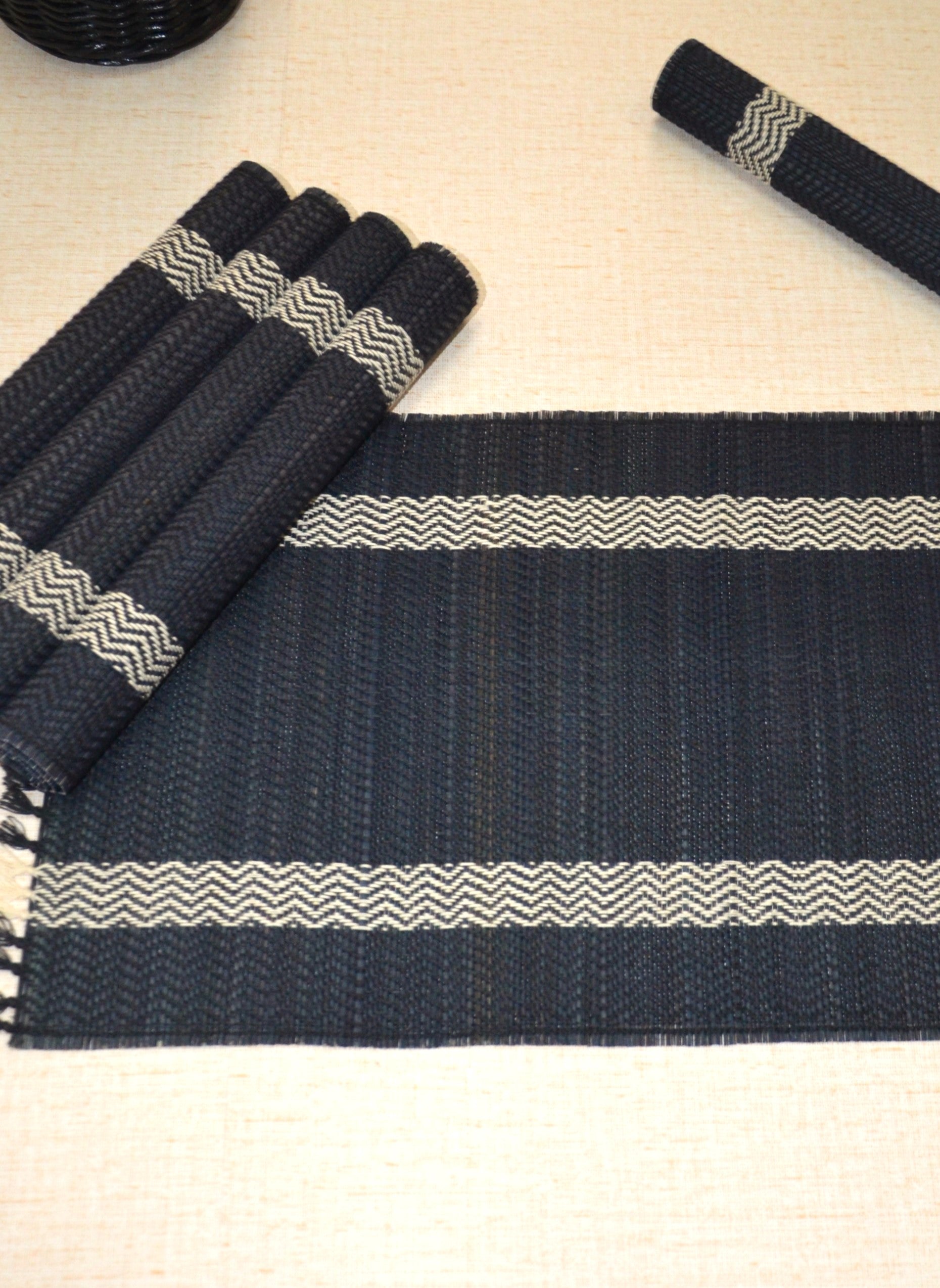 Dharini Madurkathi Tassels Placemats Charcoal (Set of 6)
