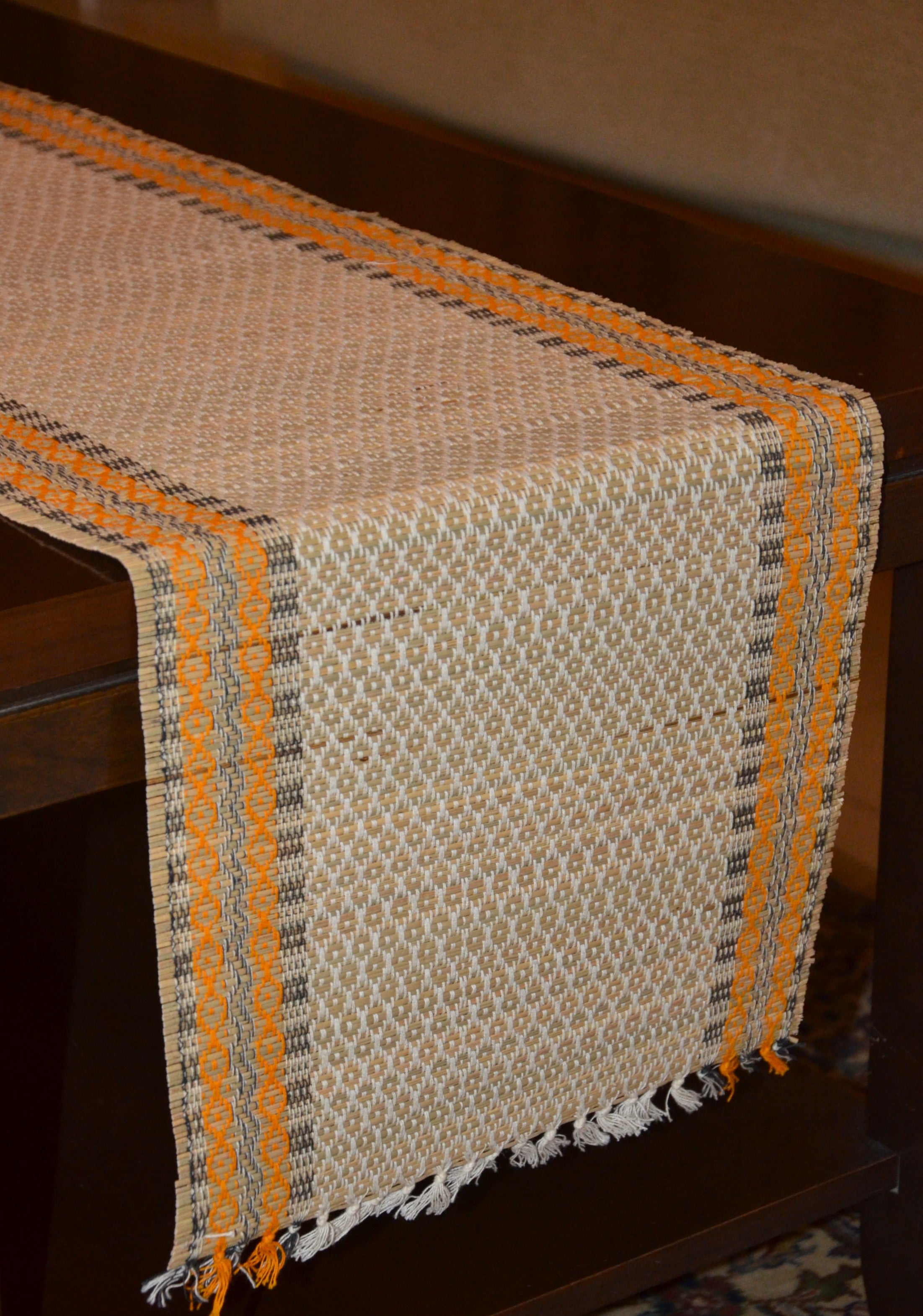 Dharini Madurkathi Diamond Table Runner Orange