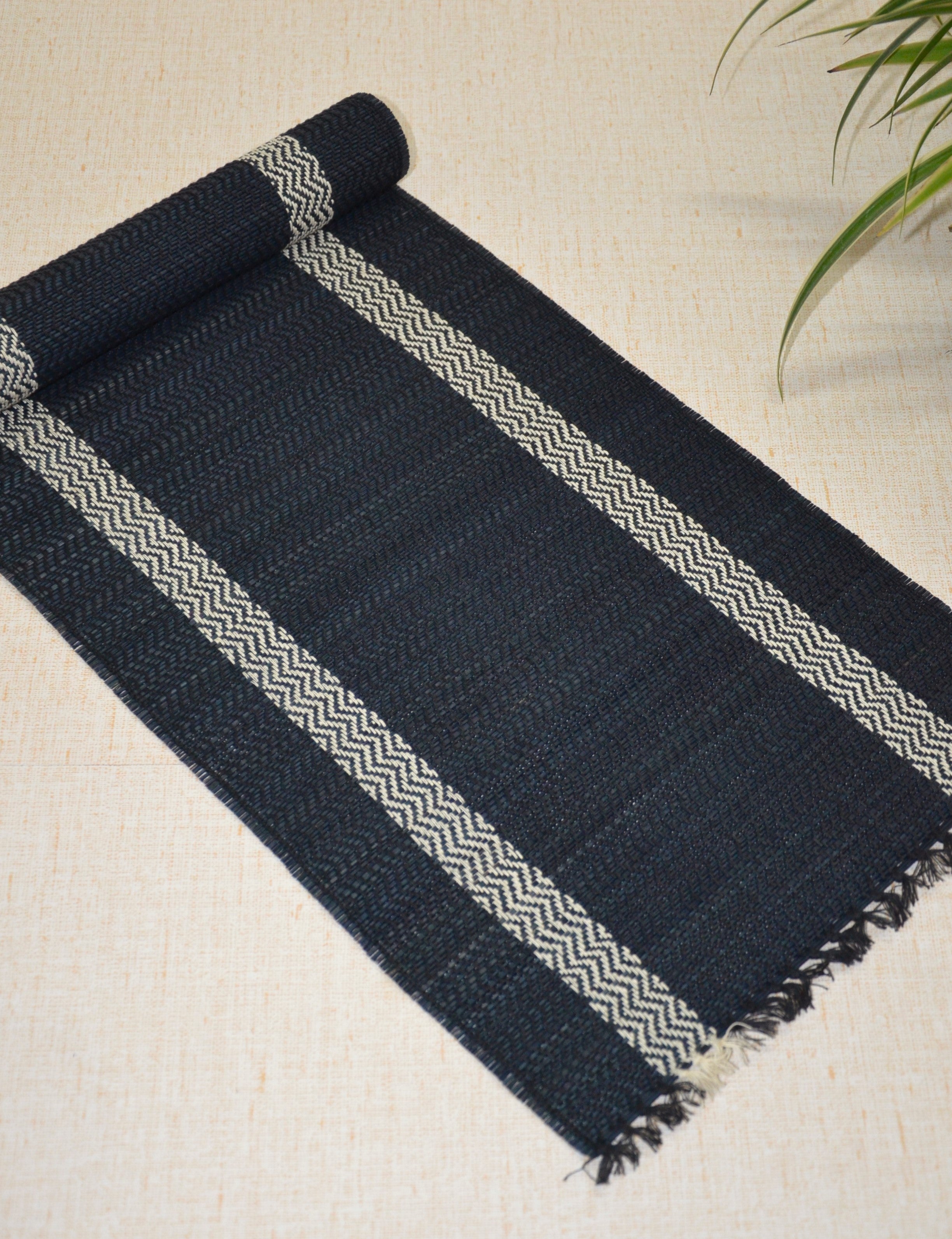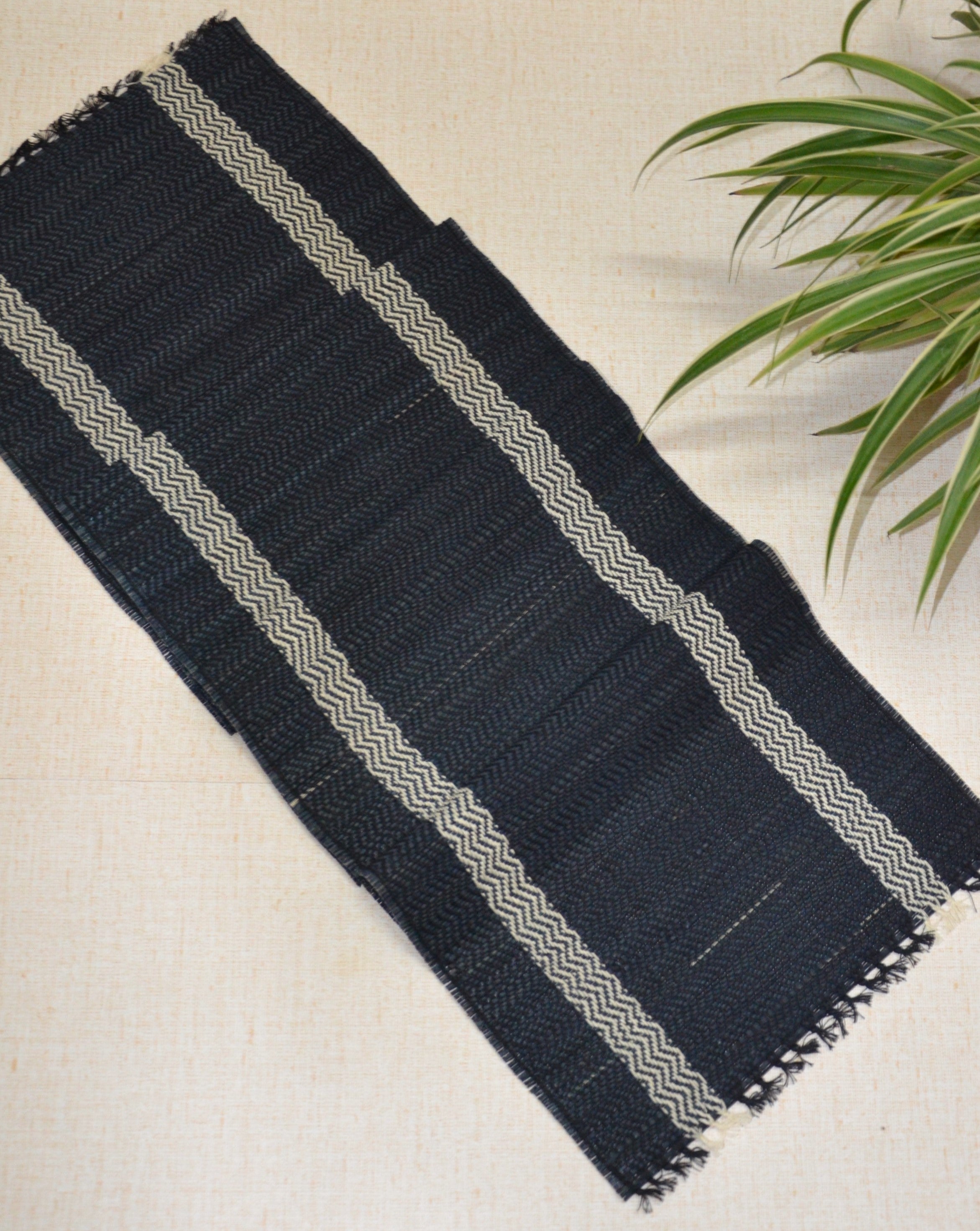 Dharini Madurkathi Tassels Table Runner Charcoal