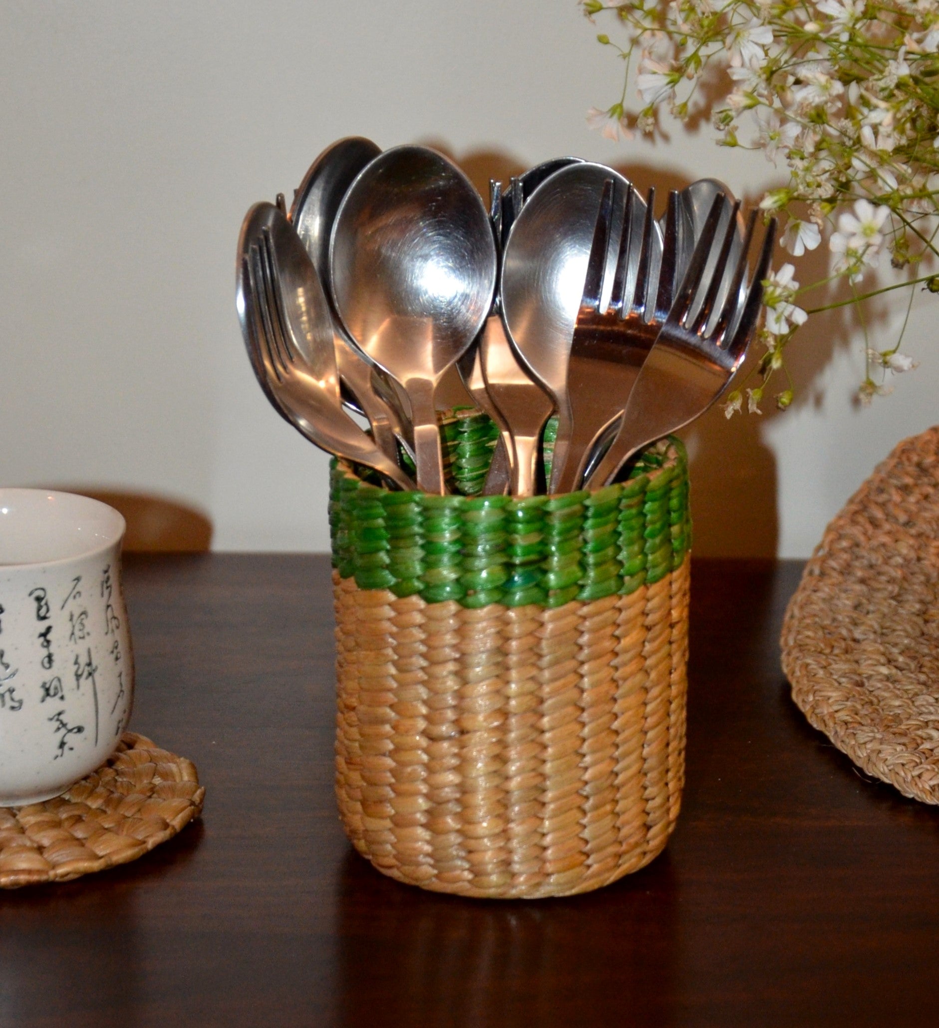 Dharini Water Hyacinth Pen & Cutlery Holder Green Natural