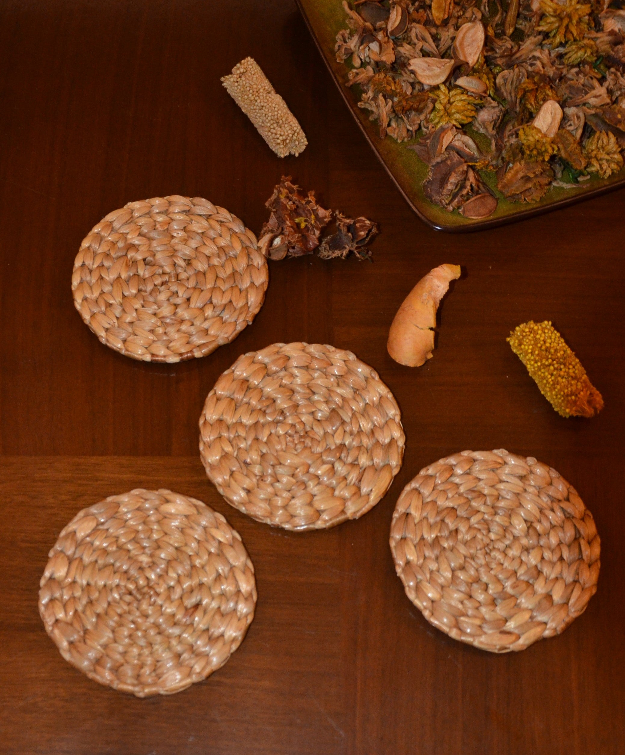 Dharini Water Hyacinth Round Coasters (Set of 4)