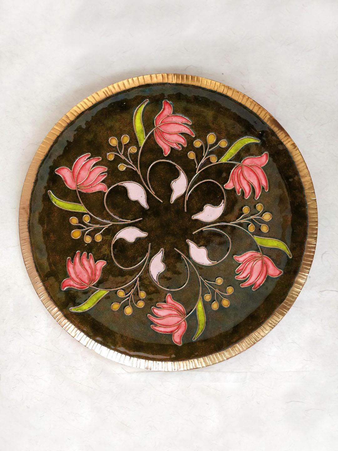 Lotus themed collection of Decorative wall plates that would bring freshness into any setting. The base of the plate is pure copper with glass enamel on top. This particular Copper enameling plate is hand crafted by our team of artisans from the western ghats of Maharashtra, India.