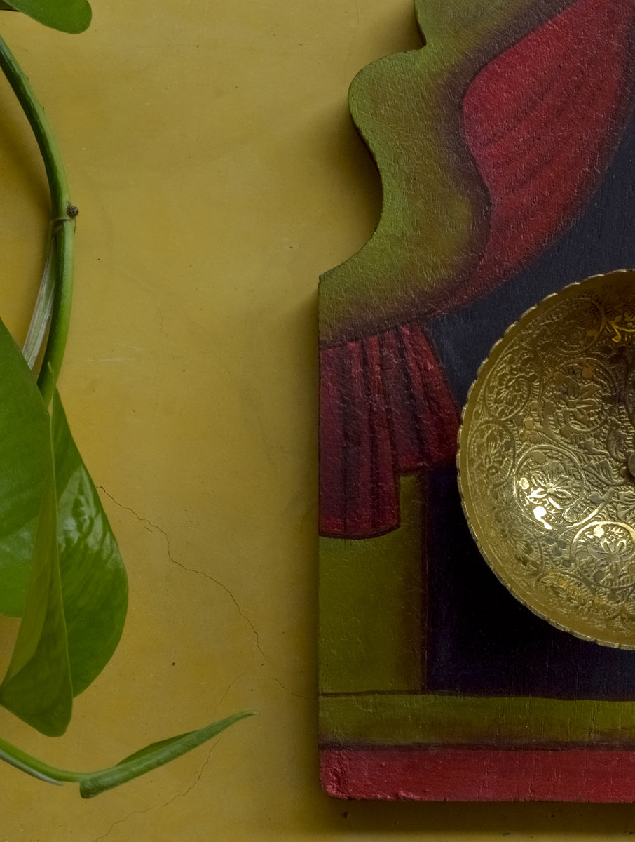 kāṃsya by Ba No Batwo is a handcrafted collection of vintage wallart, handcarved in repurposed teak wood/MDF handpainted in miniature, pattachitra and distressed style. The vintage style brass ornament adds uniqueness to each piece.
