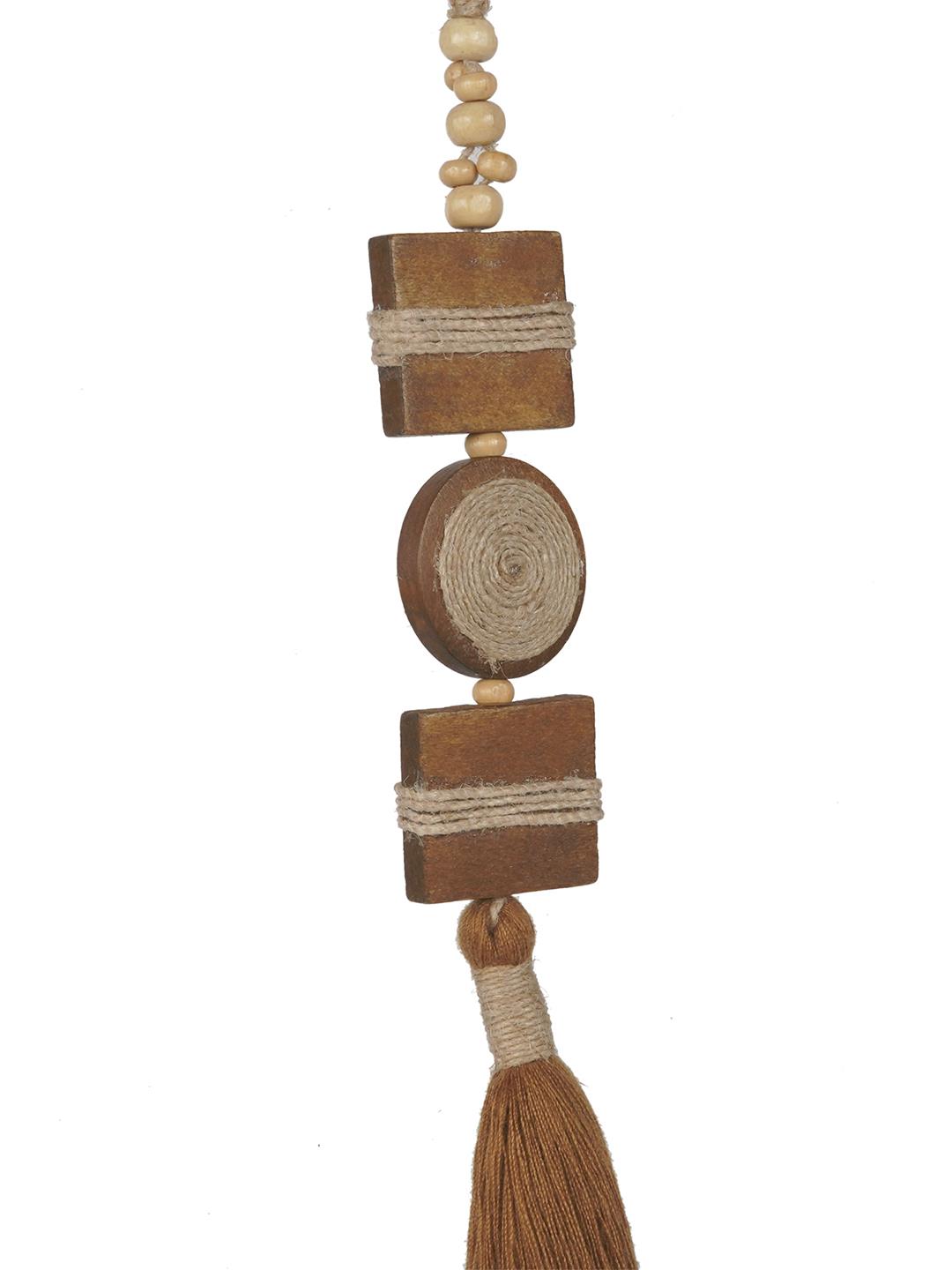 This collection comprises of warm flamboyant jewellery pieces in neutral tones. The use of shells with elements like jute and metal coins gives it a very rustic look. This bagcharm is handcrafted by accetuating small wooden beads with jute wrapping. The combinations of materials make it look like a part of nature itself. Whe by Abira is a design-driven, ethical fashion accessories brand, committed to bring marginalized families out of the poverty cycle and inspire consumers to buy eco-friendly and handmade products. We ensure a fair family investment in education, health, and savings by adding mothers to the workforce and doubling their family income