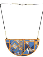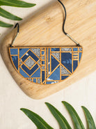 Whe Printed Fabric and Repurposed Wood Frame Maze Necklace