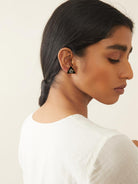 This handcrafted earring is made using Fabric, Repurposed wood, Glass Bead.