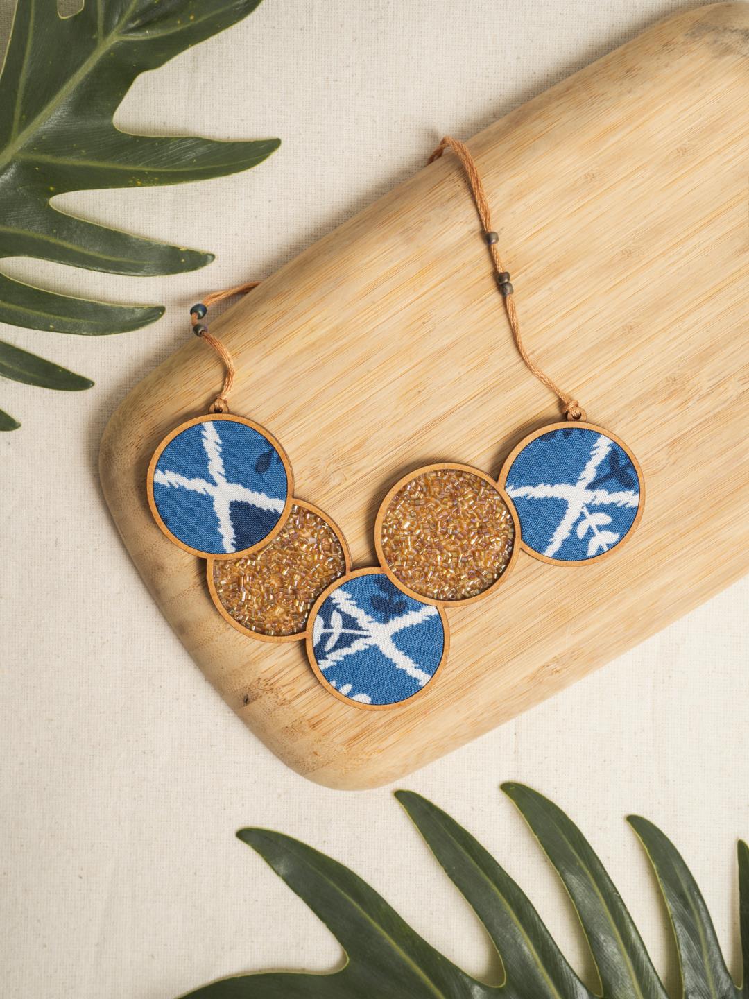 Material - Fabric, Repurposed wood The fashion industry generates a huge amount of cutting waste, about 15% of fabric get wasted during the cutting of the garment only. In this collection, we've taken the excess fabric and upcycled it into beautiful jewellery, contributing to a sustainable society.