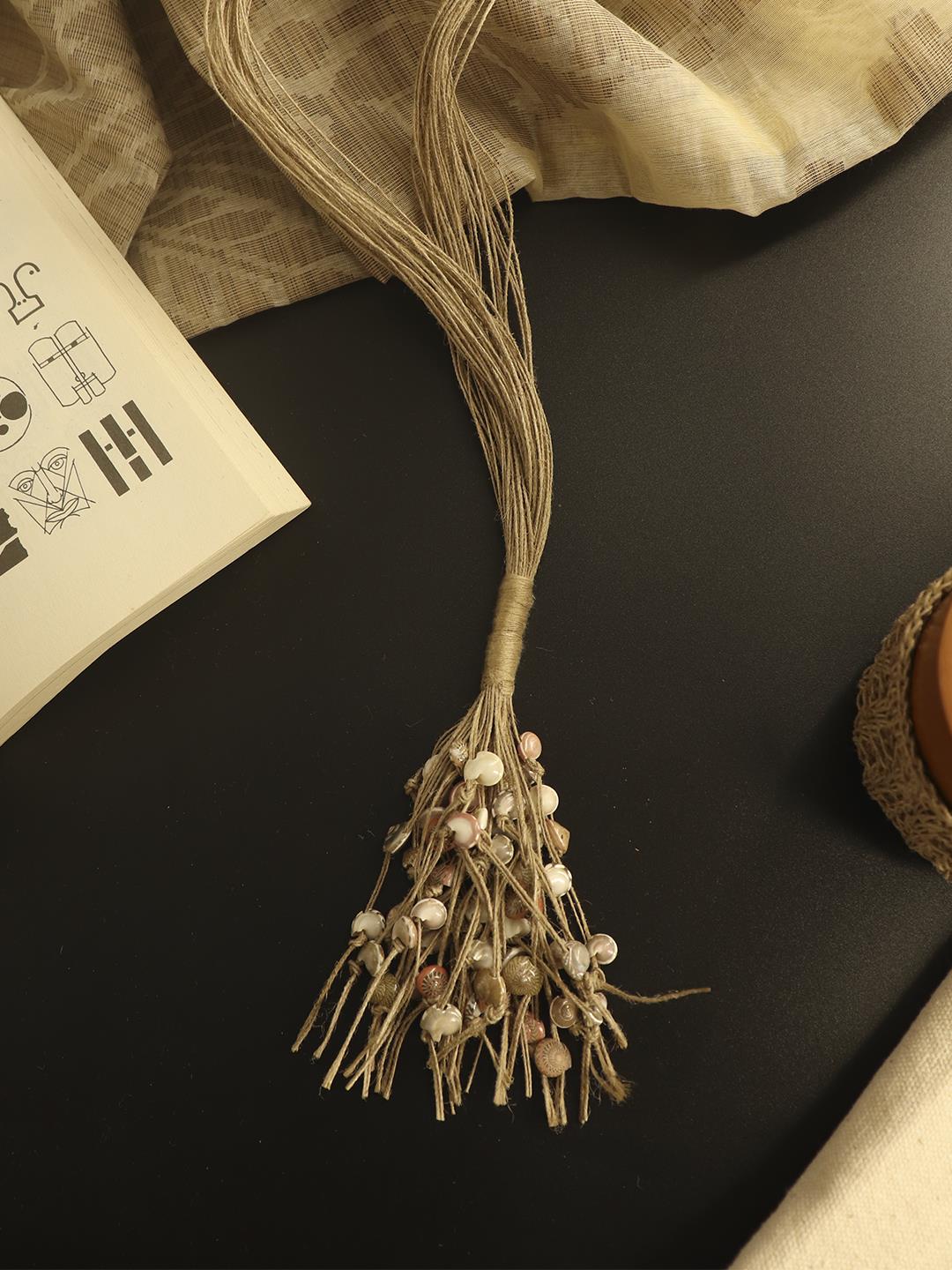 This collection comprises of warm flamboyant jewellery pieces in neutral tones.Use of shells with elements like jute and metal coins give it a very rustic look. This lariat style necklace is mad using multiple Jute strings and shells. A perfect styling accessory for the eco-conscious you! Whe by Abira is a design-driven, ethical fashion accessories brand, committed to bring marginalized families out of the poverty cycle and inspire consumers to buy eco-friendly and handmade products. We ensure a fair family investment in education, health, and savings by adding mothers to the workforce and doubling their family income