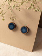 Whe Repurposed Wood Frame Blue Kalamkari Earring