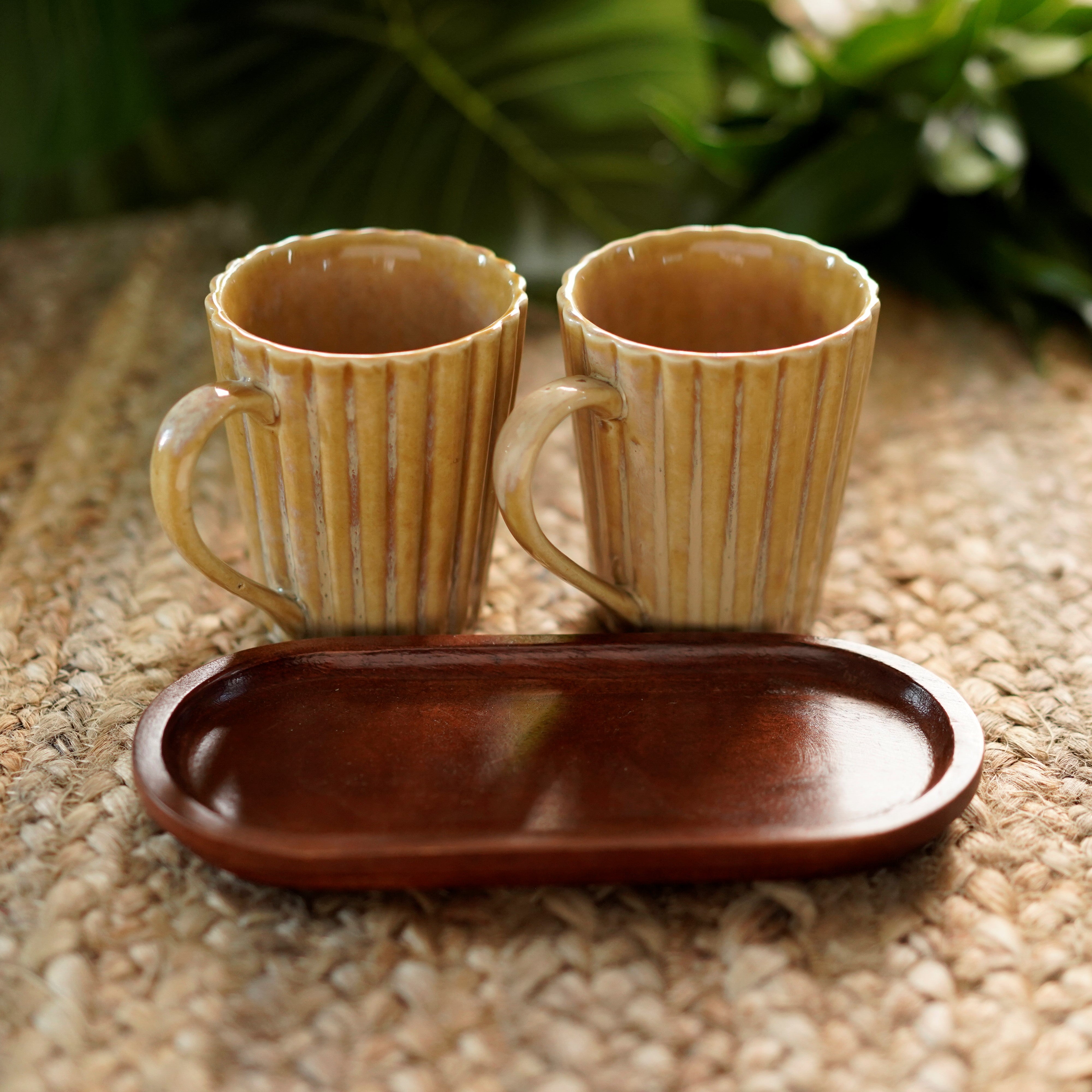 DHERA OCHRE COFFEE MUGS SET of 2 with OVAL TRAY