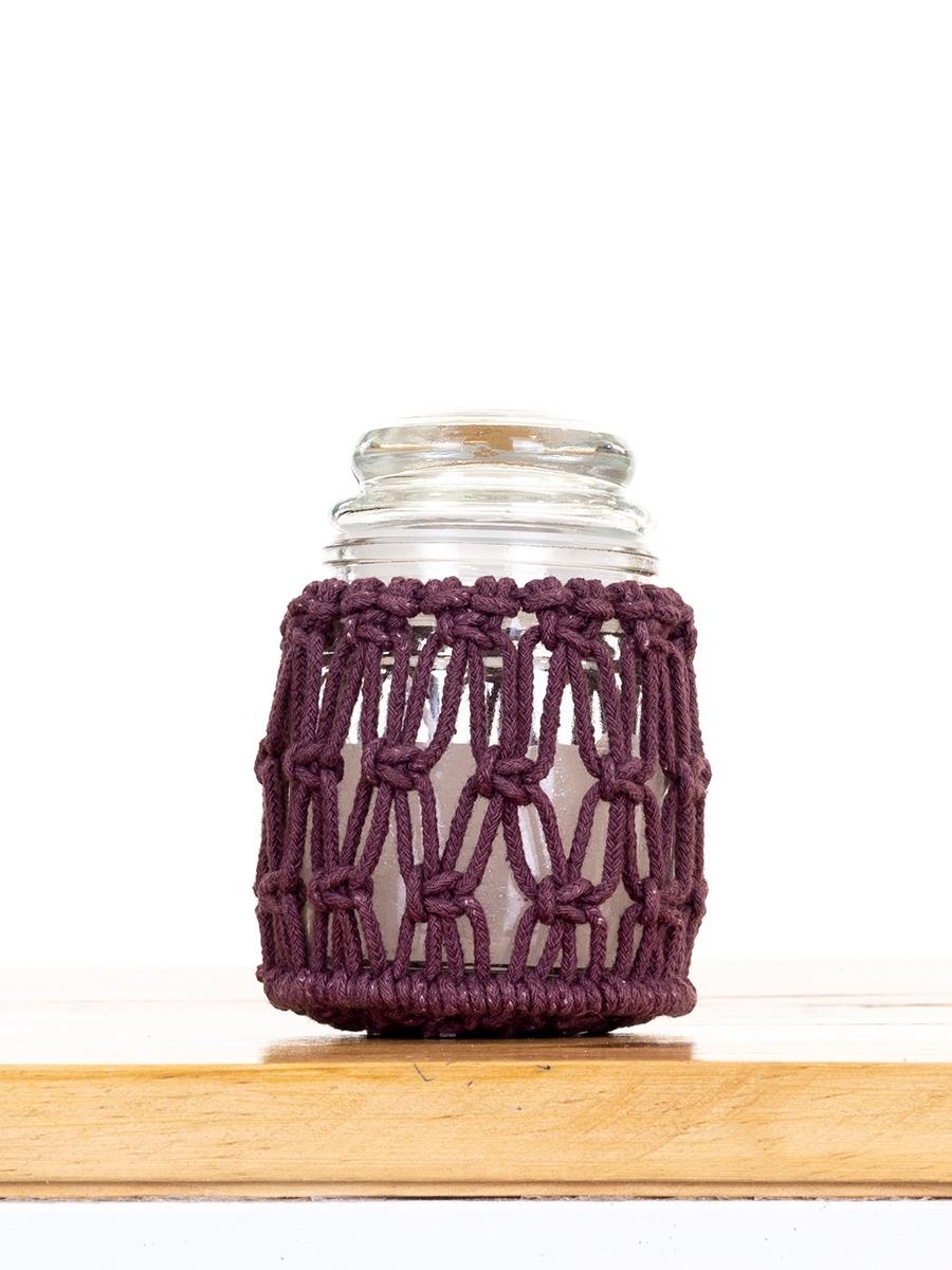 One O Eight Knots Burgundy Criss Cross Hand-Knotted Candle Jar