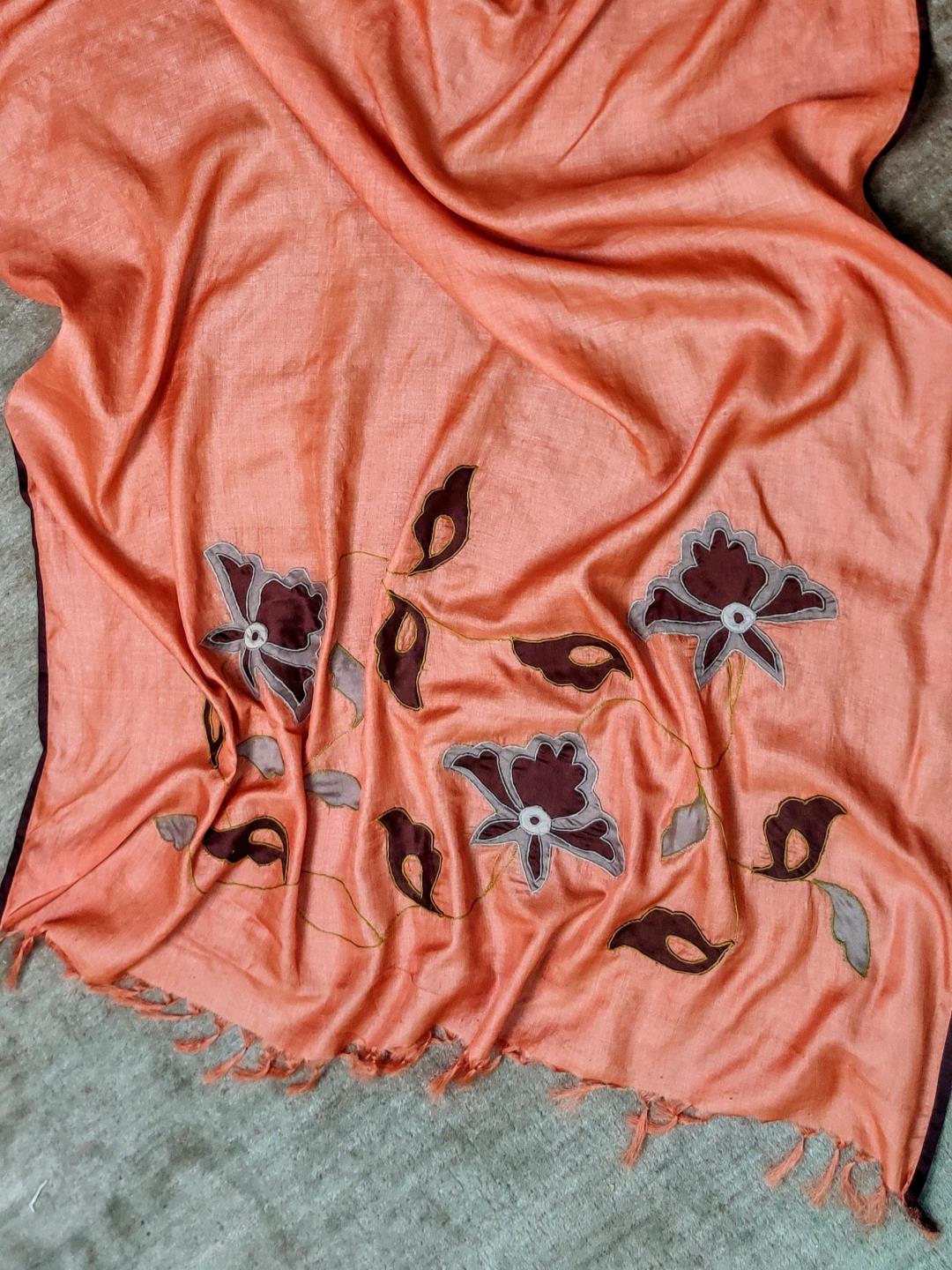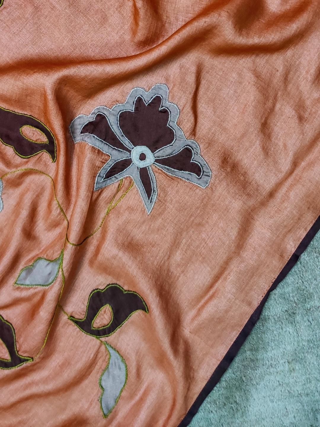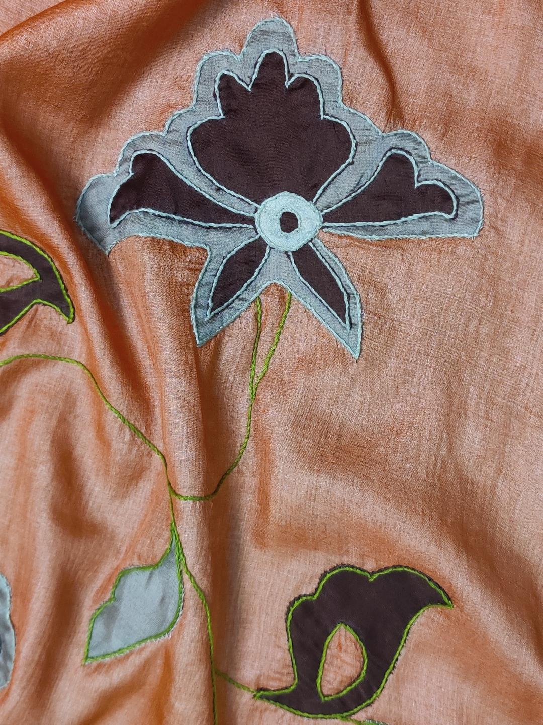 Pure handmade silk fabric with hand applique motifs on dupatta palla.