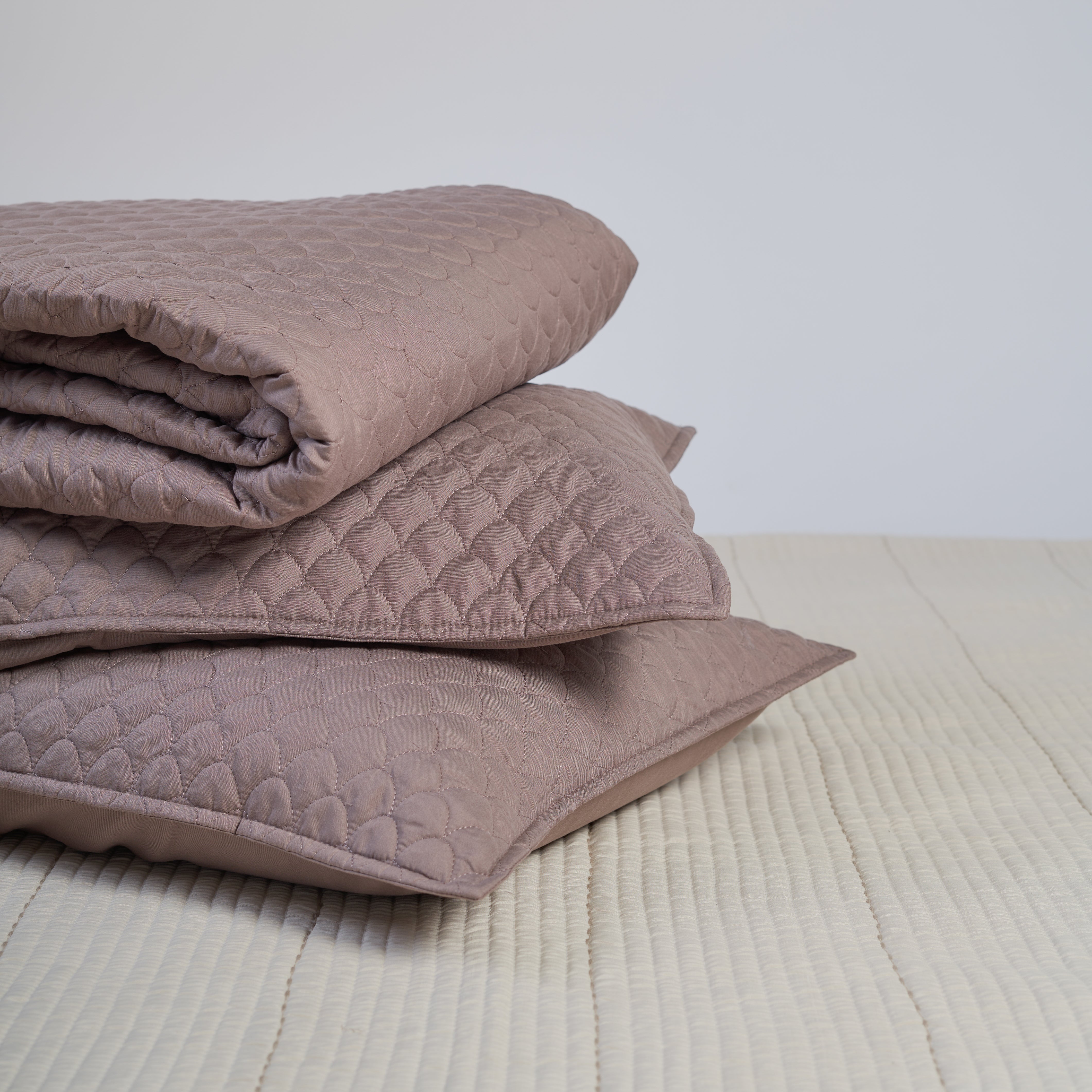 Enhance your bedroom with our Cotton Quilted Bedcover, featuring an elegant scallop-shaped quilting pattern. Crafted from 100% premium cotton, this bedcover offers a soft, breathable, and comfortable feel. Its simple design ensures ease of use, while its machine-washable fabric makes maintenance a breeze. The set includes 1 bedcover and 2 pillow covers.