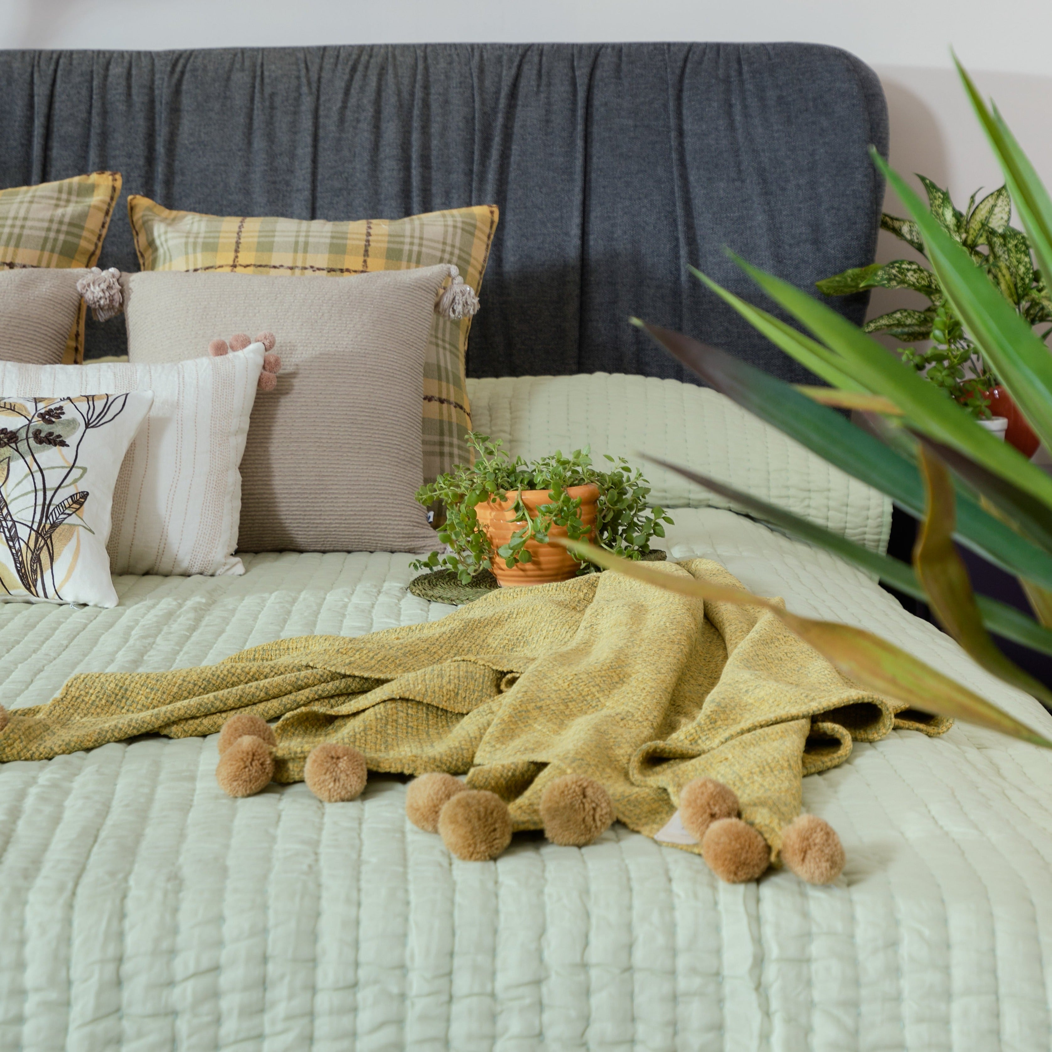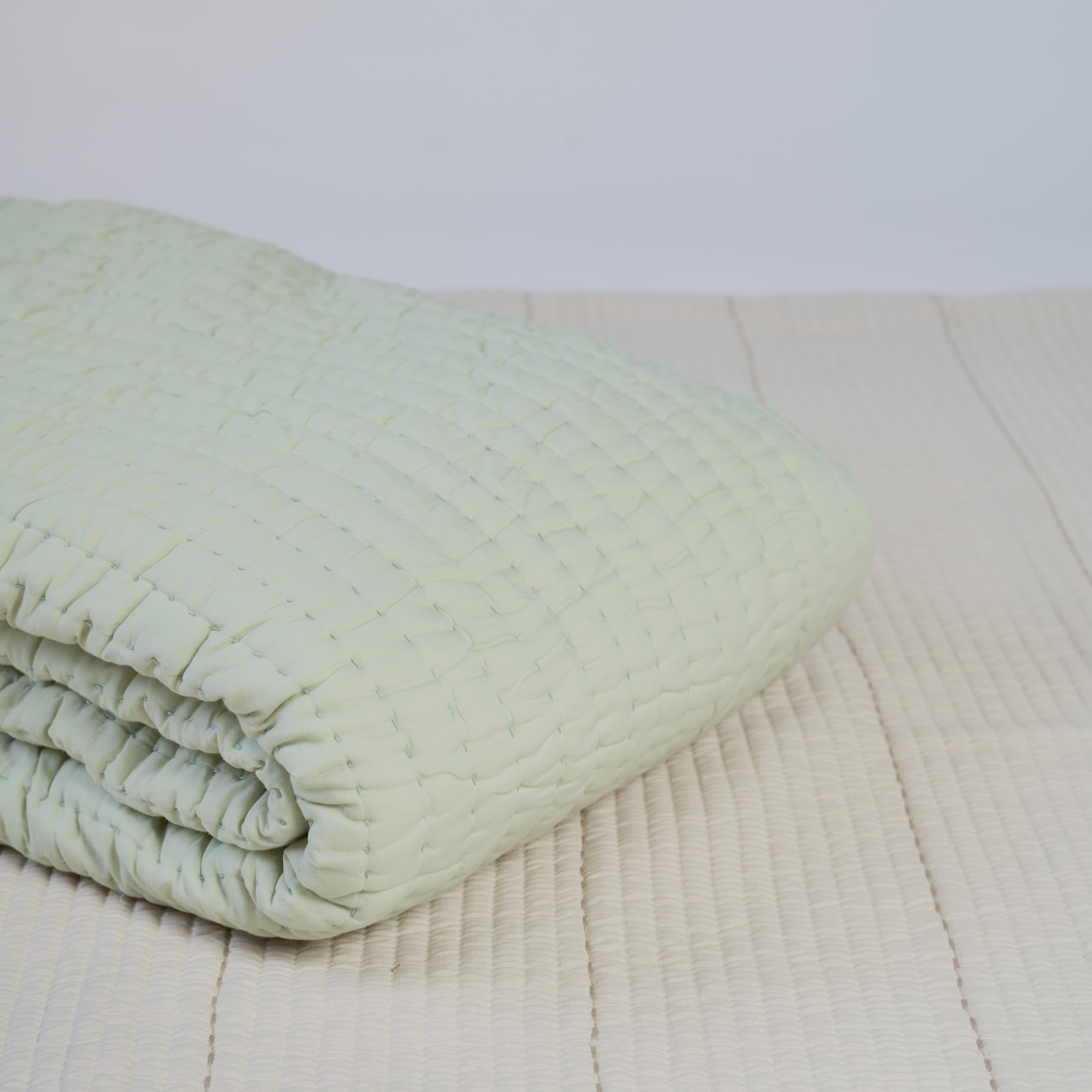 Handcrafted with soulful Kantha Stitch, our range of Pure Cotton Bedcovers with cotton filling is the perfect addition to your bedroom. These bedcovers offer unparalleled comfort and a luxurious look and feel, elevating the ambiance of any space. Additionally, they can be custom-made to fit your specific size and color requirements, ensuring a perfect match for your decor. Experience the perfect blend of craftsmanship and elegance with our bespoke cotton bedcovers. This set only includes 1 bedcover