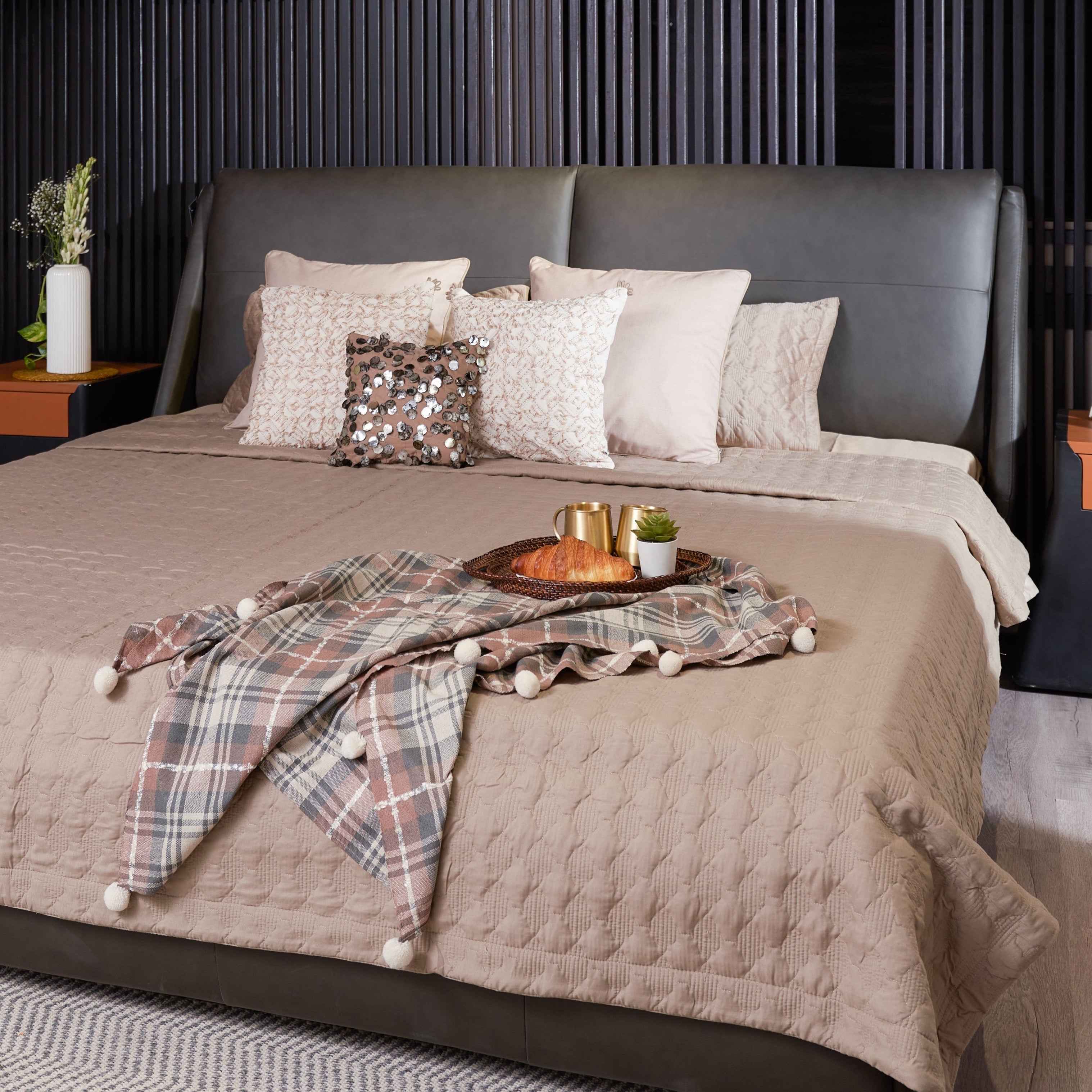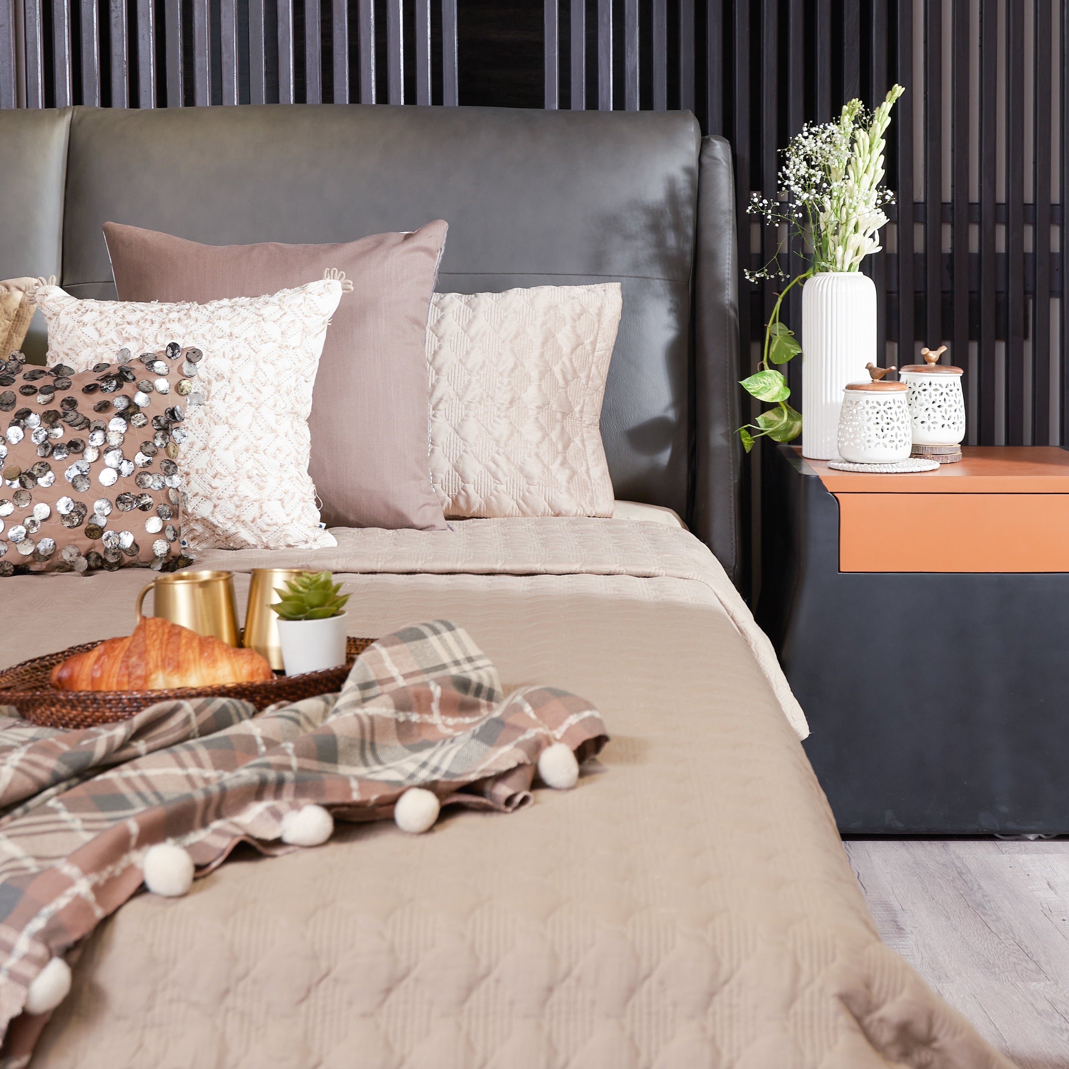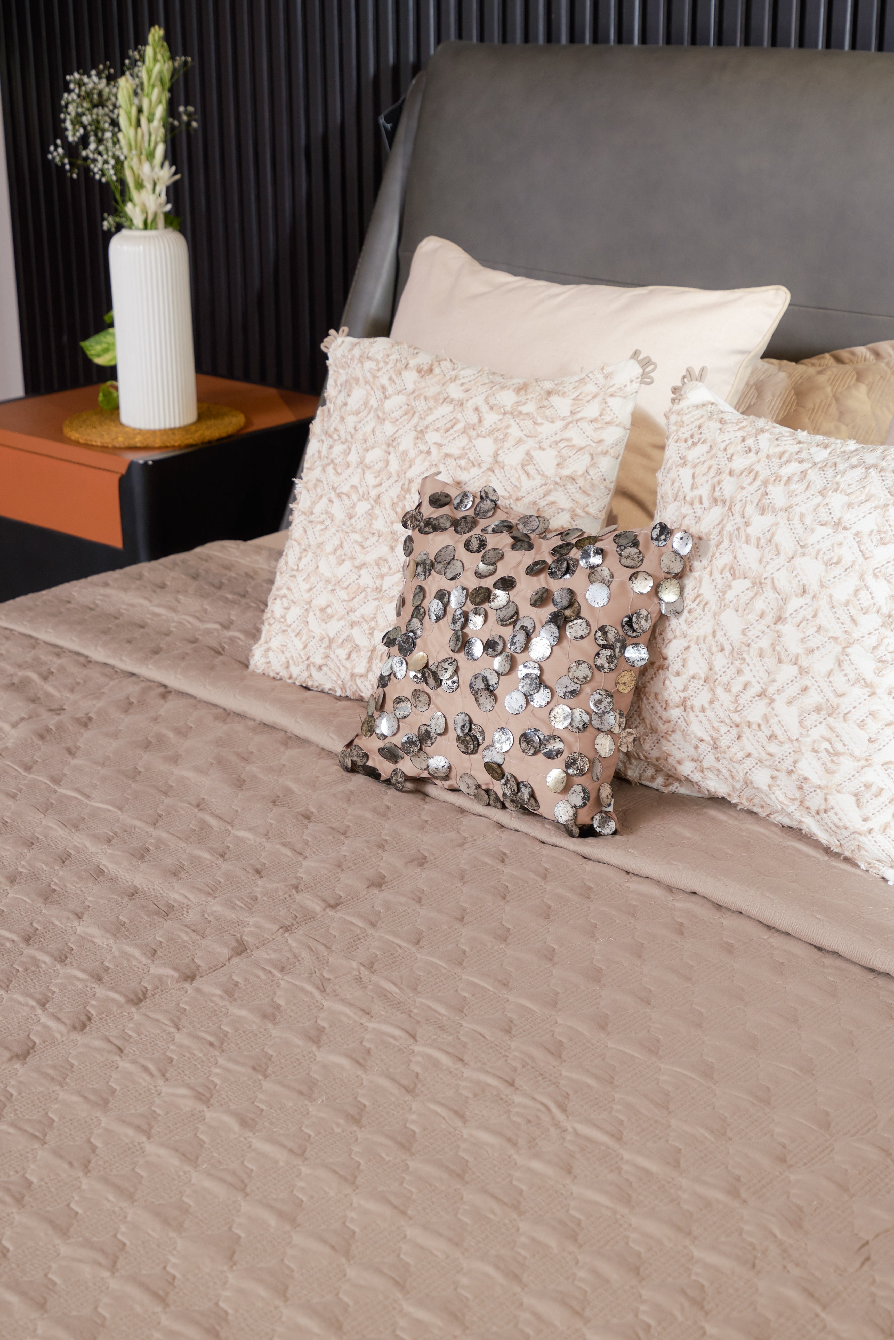 Our luxurious velvet bedcover is crafted to bring a touch of elegance to your bedroom. Quilted with a sophisticated geometric design, this bedcover combines opulence with comfort, offering a rich texture that enhances any setting. Its light velvet material not only gives a plush, comfortable feel but also ensures it's easy to maintain. Elevate your personal space with this one-of-a-kind bedcover. The set includes 1 bedcover and 2 pillow covers.