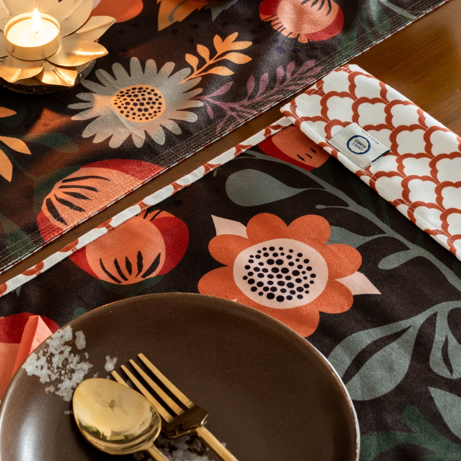 Introducing the "Autumnal Foliage Rustic Table Mat," a celebration of the rich and earthy hues of fall foliage that brings a touch of the outdoors to your dining experience. This captivating table mat features an intricately designed array of foliage in varying shades of rust, creating a warm and inviting atmosphere for your table setting.