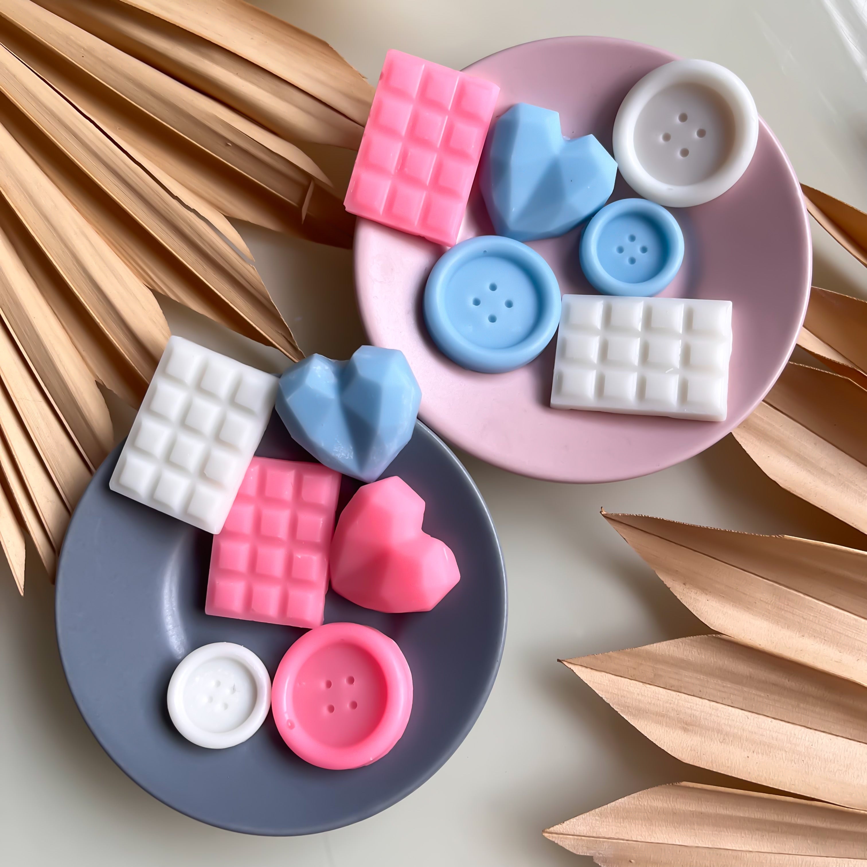Wax melts are scented pieces of soy wax. They are basically candles without a wick. They come in different fragrances, shapes and sizes. A wax melt can give off a slight scent when cold; however, they are designed to be slowly warmed using diffuser which uses a tea light candle as its heating source or wax warmer.