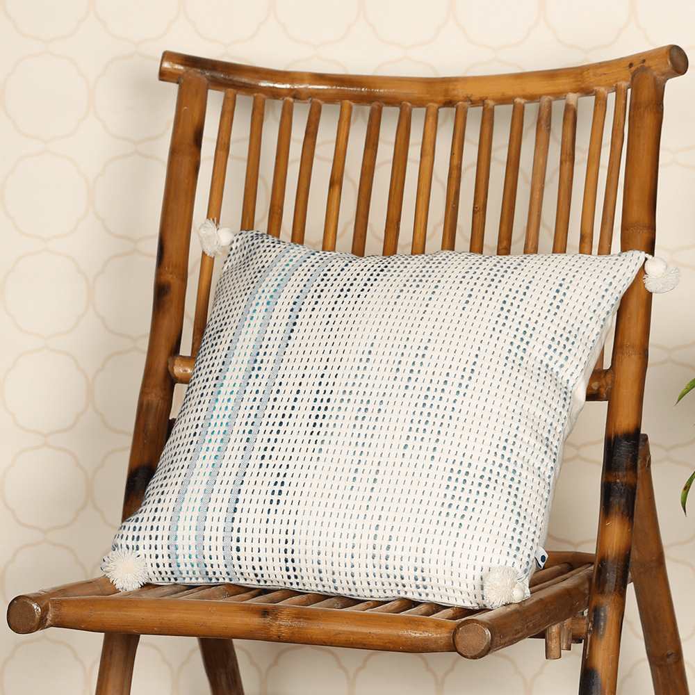 Our Dash 100% Organic Cotton Cushion Cover features a calm and tranquil exterior. Just what you need to lounge against as you sip on your soothing evening tea.