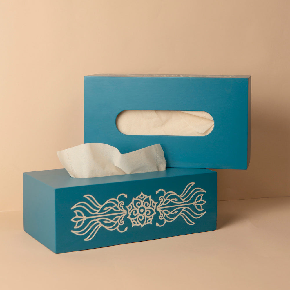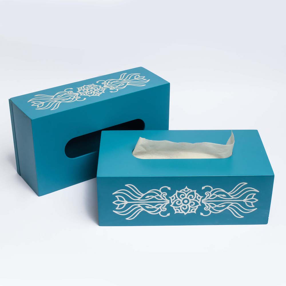 Engraved Blue Tissue Box