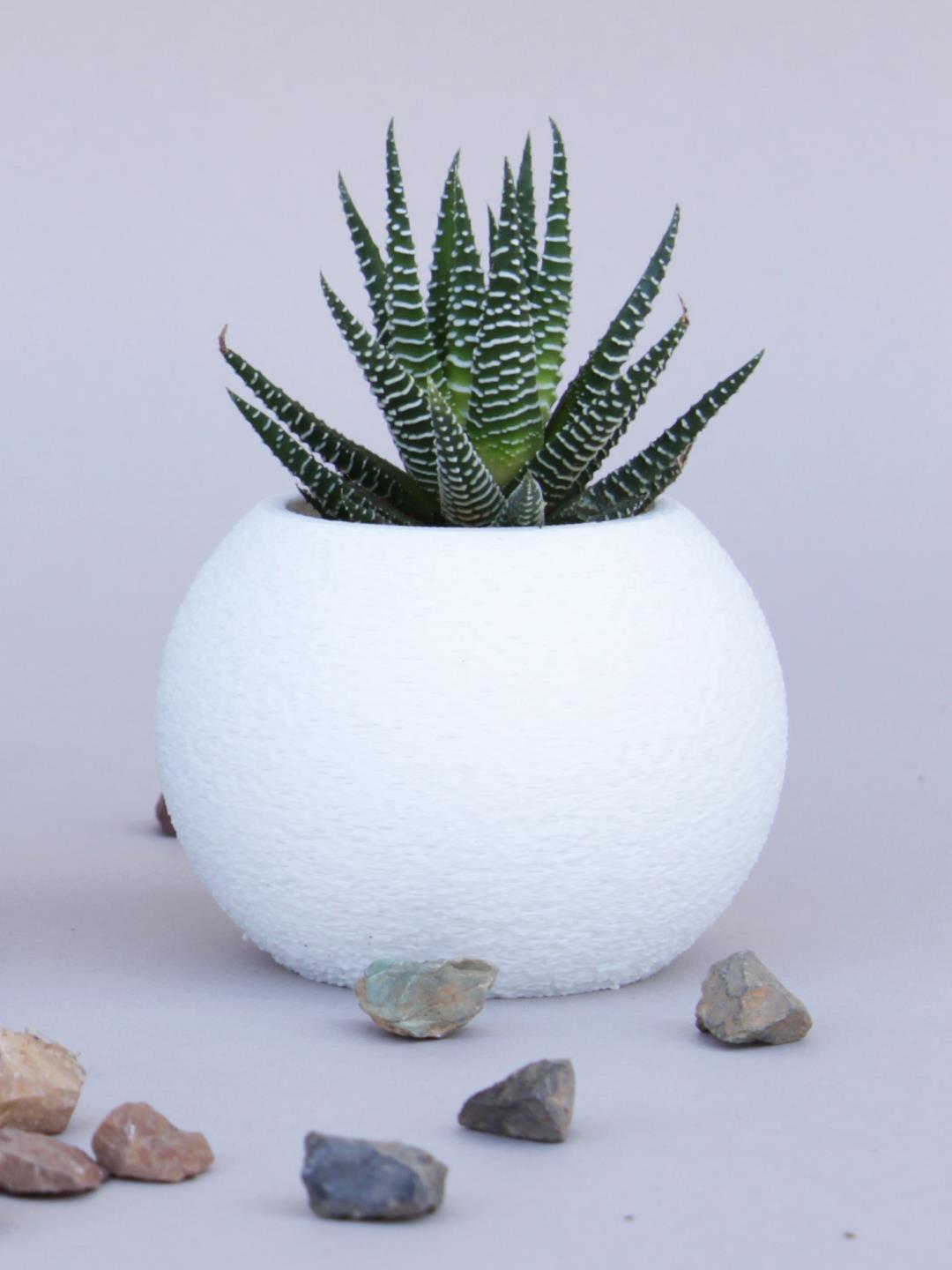 Bring a touch of elegance and style to your succulent or cactus with this design pot, printed in eco-friendly plastic.