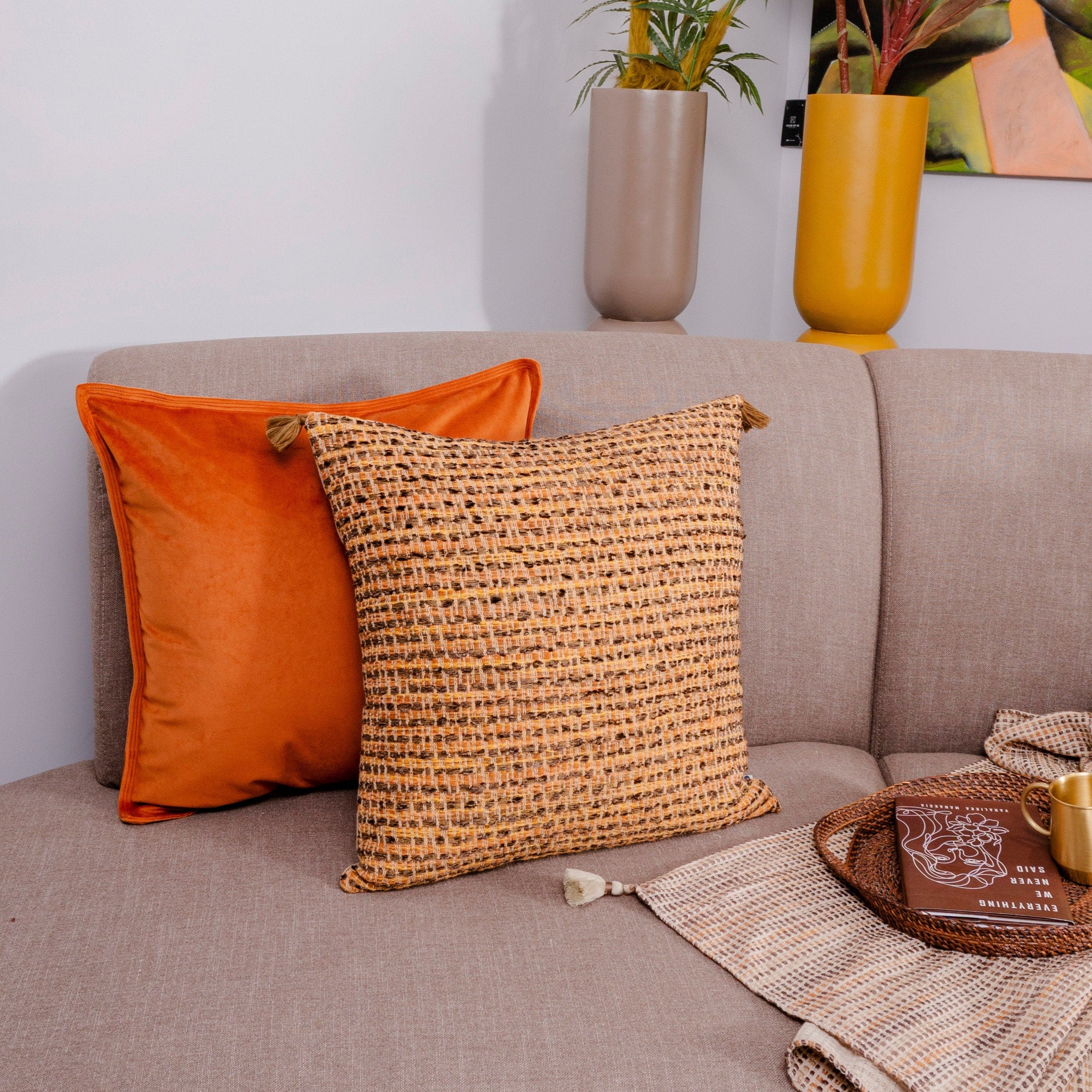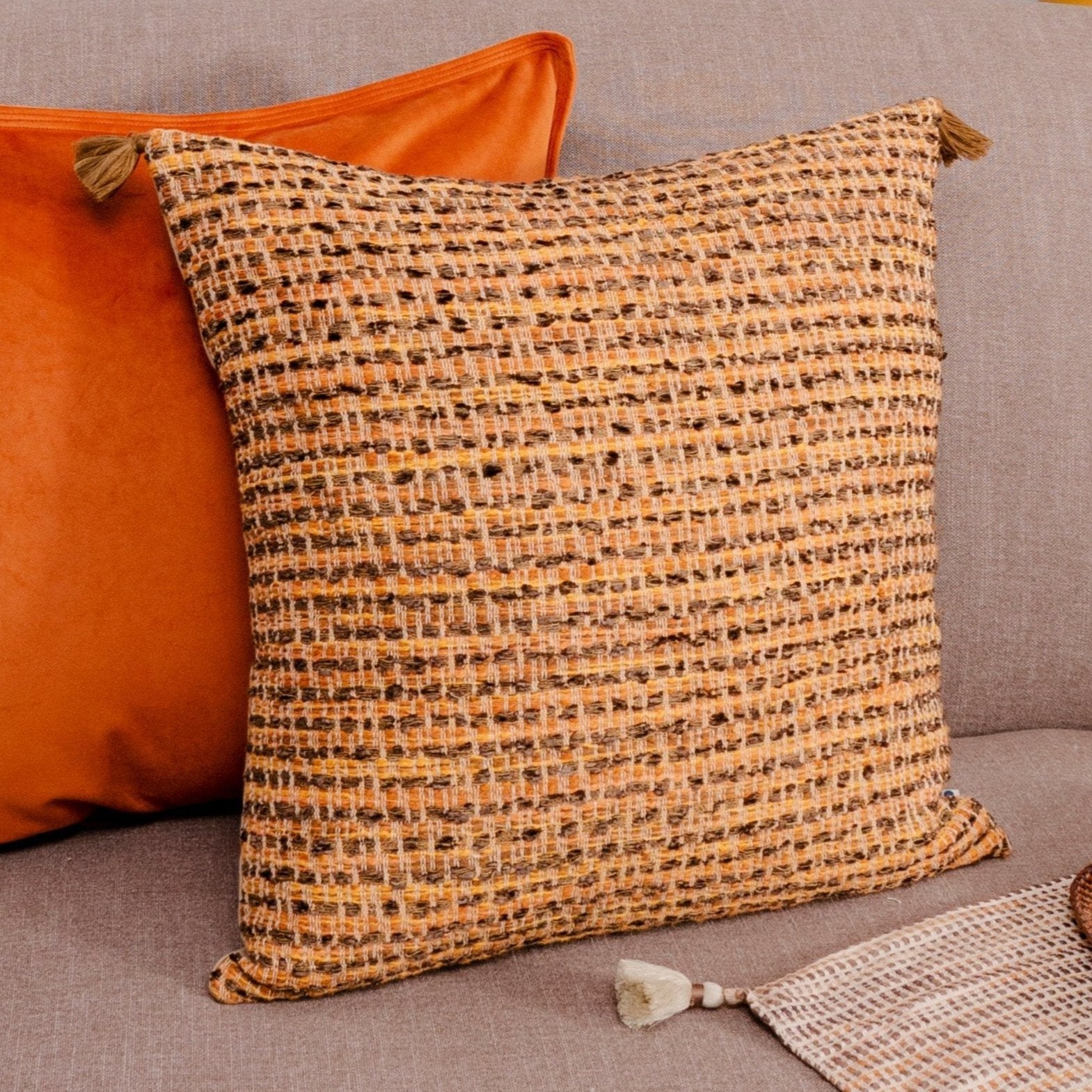 Infuse your space with texture and color through our handwoven bouclé yarn cushion cover. Crafted with different bouclé yarns, this cushion showcases a striking mix of colors and soft loops, adding depth and warmth to any room. Perfect for creating a bold yet cozy statement.