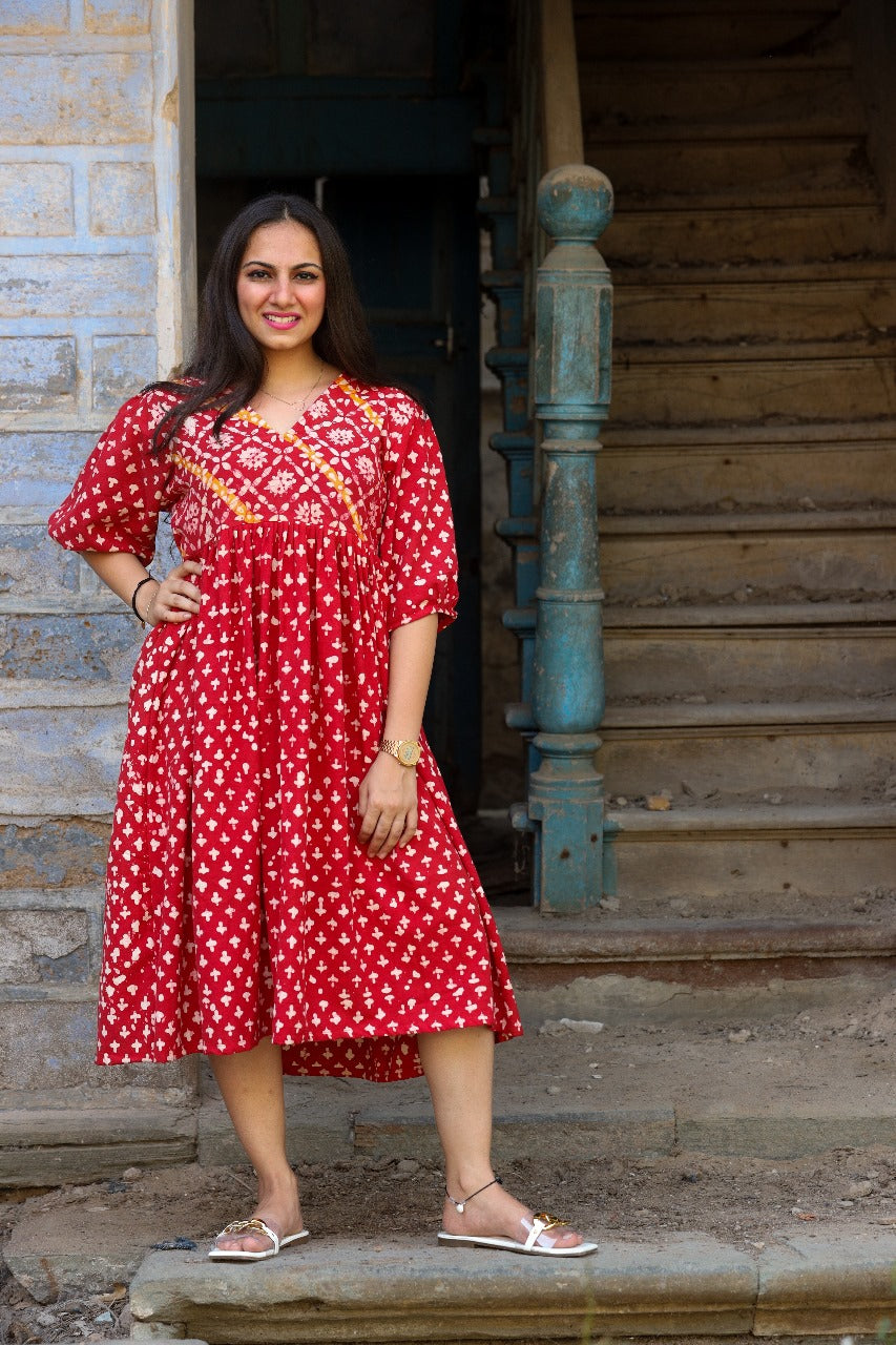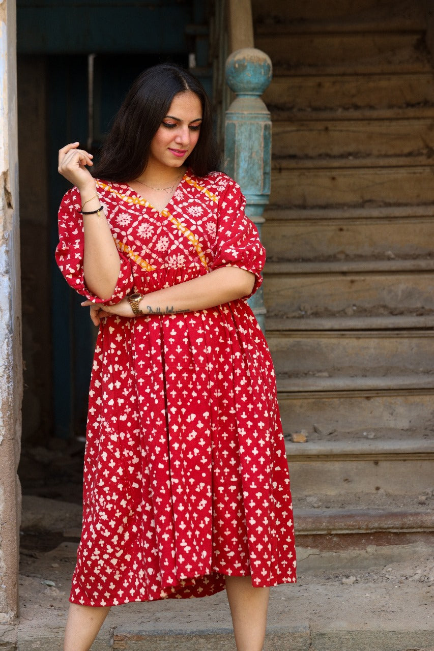 Hand block printed with bright and bold colors, this tunic is sure to stand out. Made of khadi fabric and hand block print, the Basini Tunic is comfortable and wrinkle resistant, making it perfect for everyday wear or weekend outings.