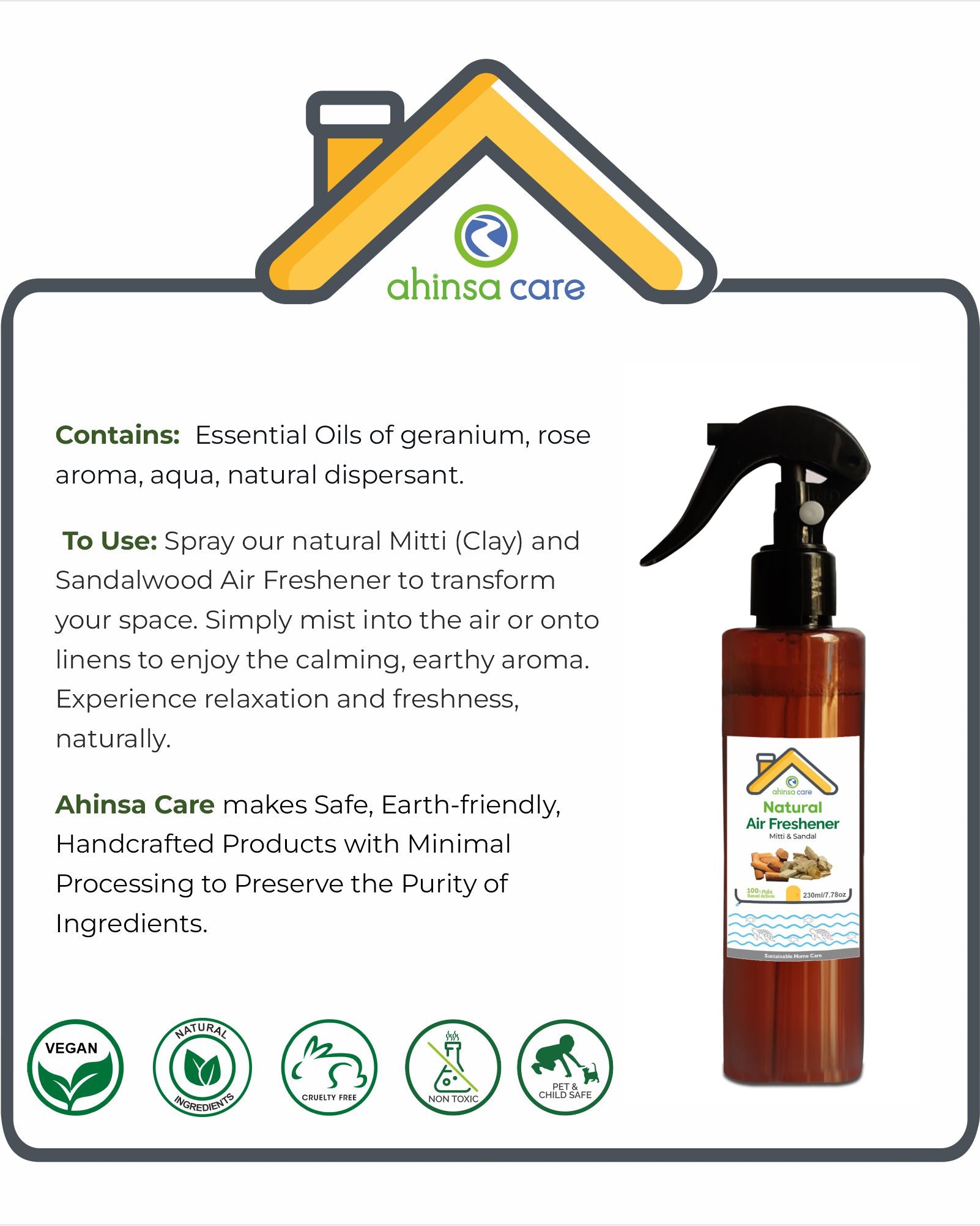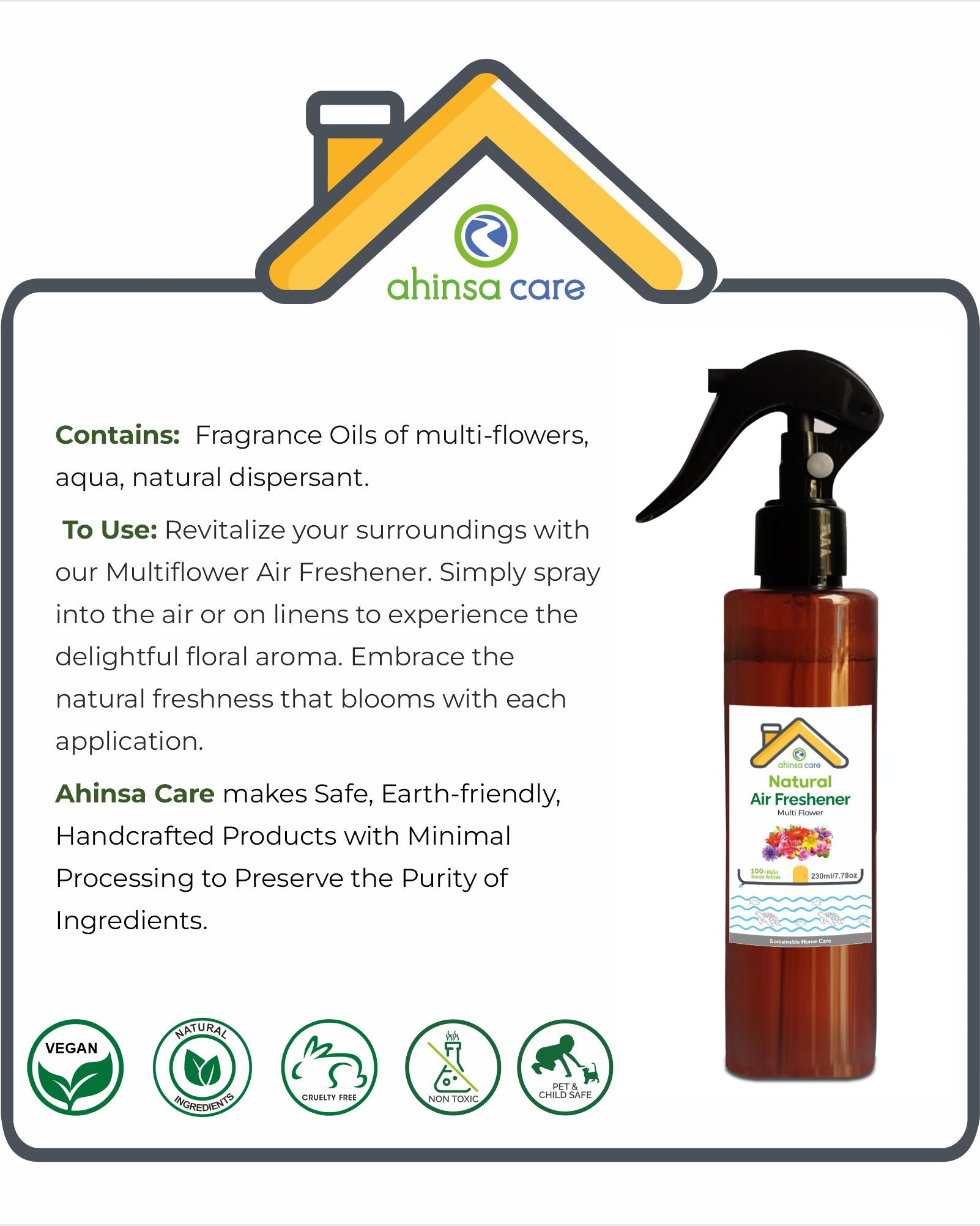 Ans. Natural air fresheners are made from plant-based ingredients, essential oils, and other eco-friendly components to eliminate odors without synthetic chemicals.