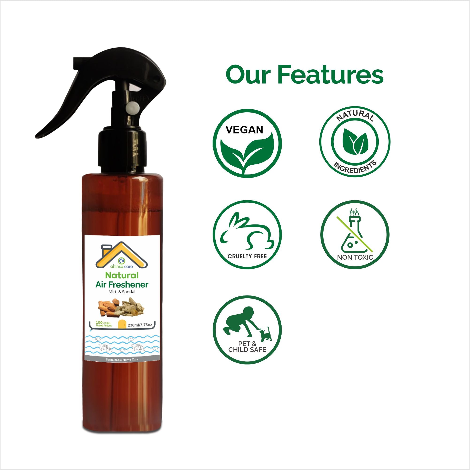 Introducing Ahinsa Care Natural Air Freshener, for a fresh and inviting home environment. Crafted with care using natural ingredients, our air freshener offers a delightful scent that rejuvenates any space.