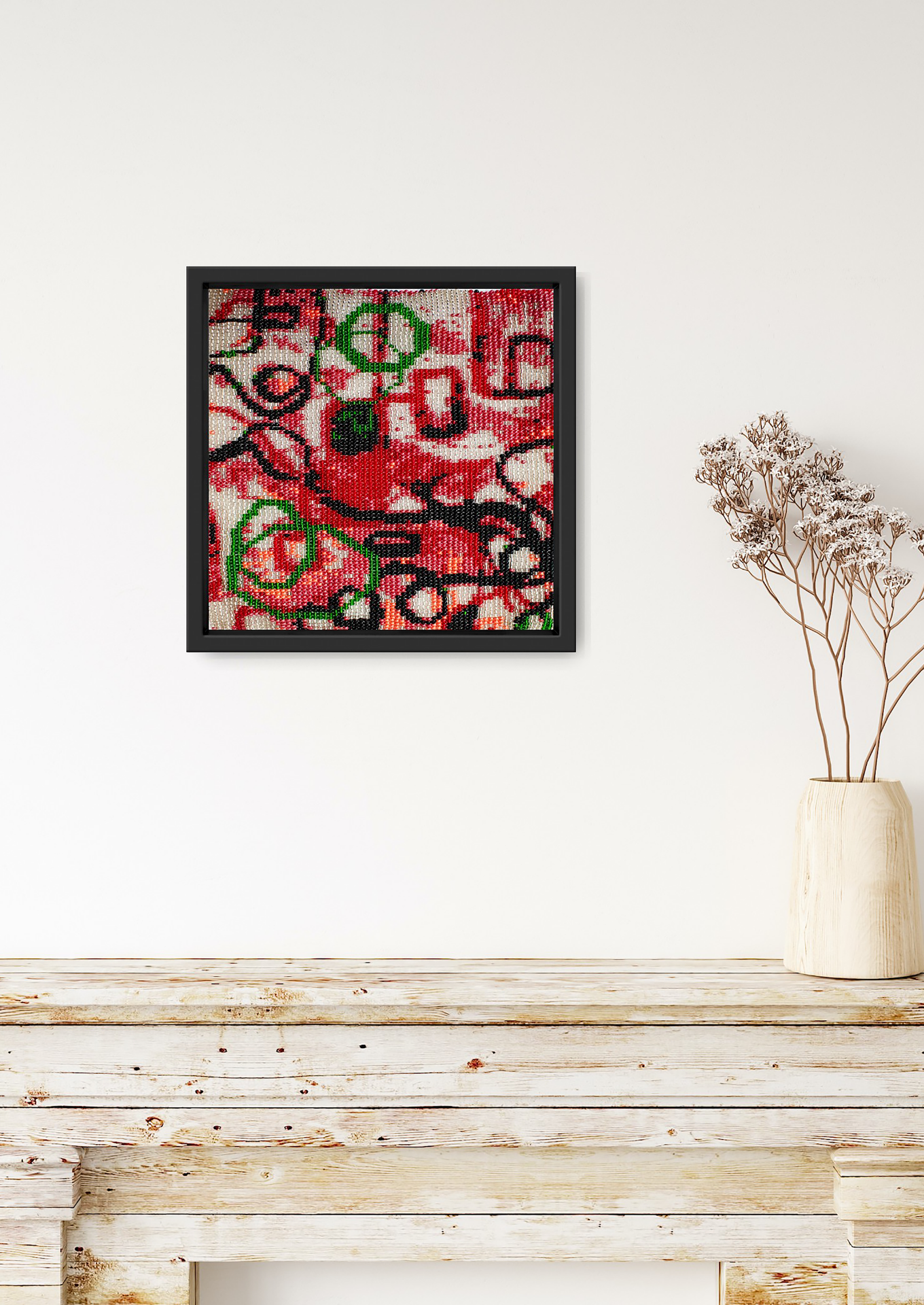 Material: Glass beads, cotton threads stitched onto cotton fabric